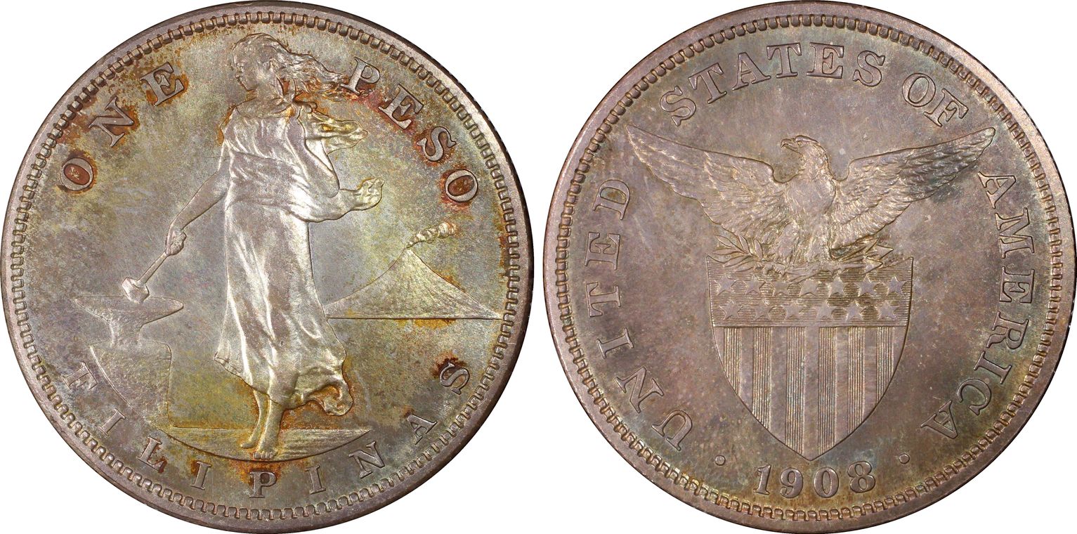 Handsomely toned in dominant olive-gold and charcoal-blue, glints of brick red are also evident here and there around the obverse periphery. A gorgeous Gem with solid technical quality and eye appeal to spare. A stellar example from the final year of Proof coin production for the Philippine Islands under U.S. administration.