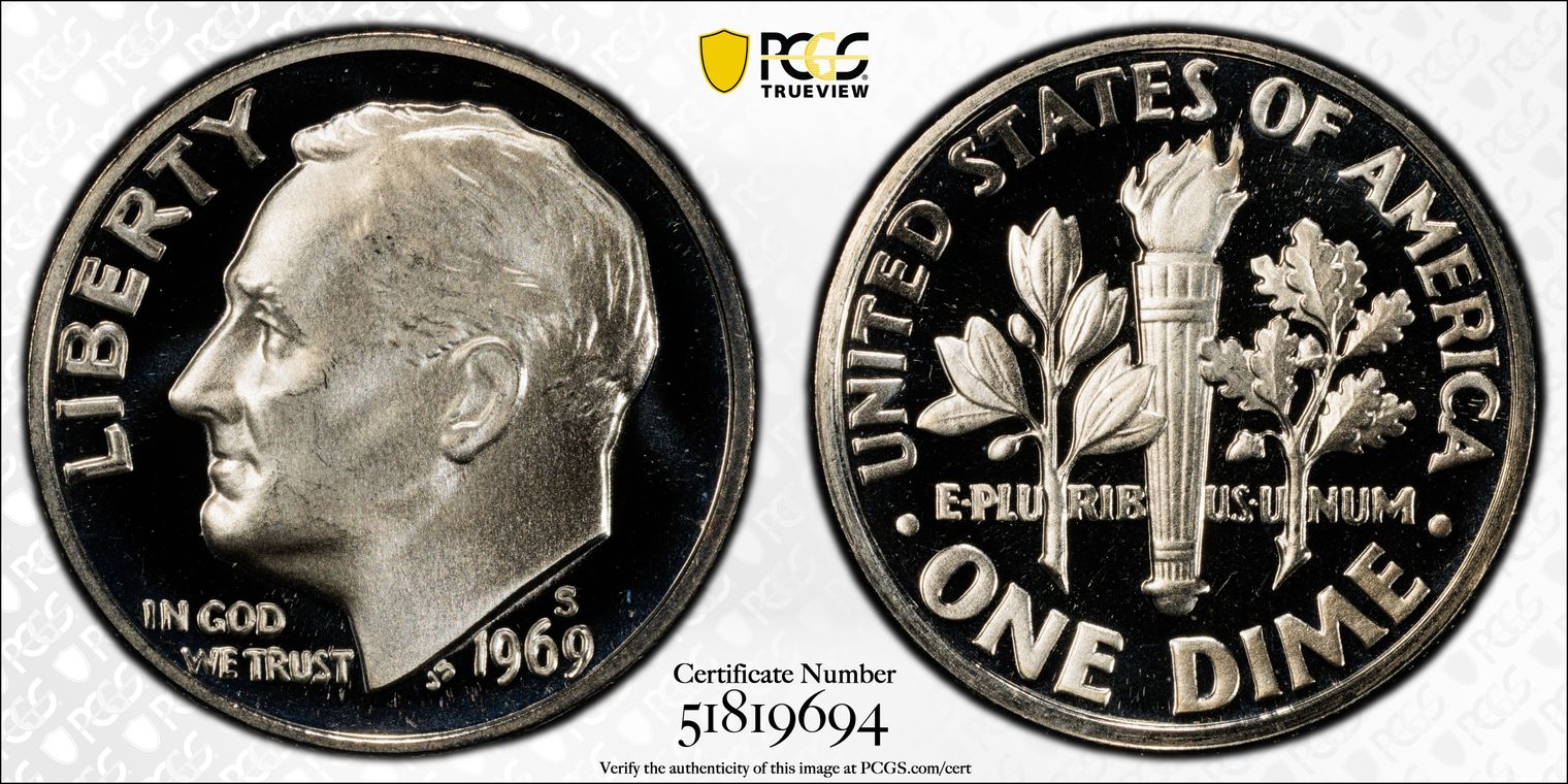 1969-S 10C PR68DCAM