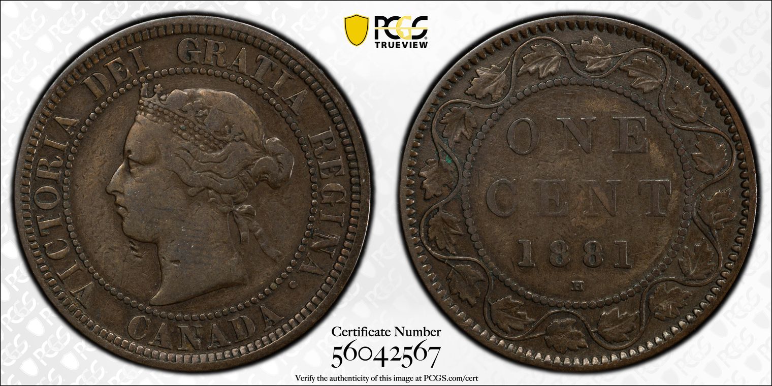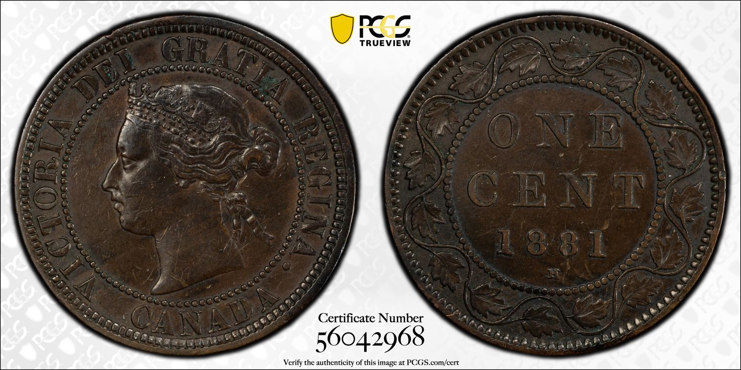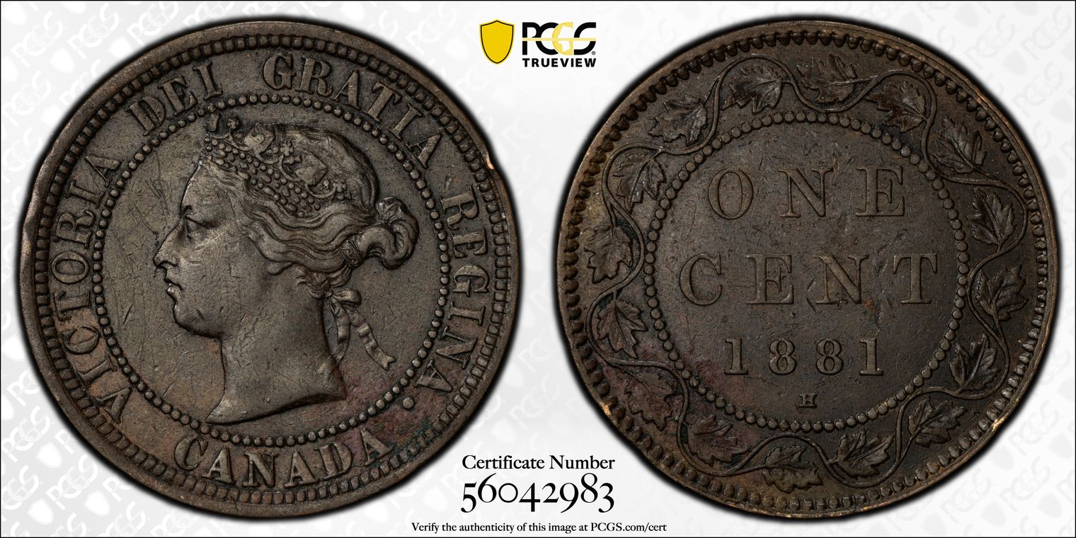 Bought at auction with Stack's Bowers Jan 2025.... Brisk bidding!! I believe this coin to be much rarer than thought?? I have seen some 1881 Canadian Large Cents that have been classified as Doubled Die Obverse coins, yet with far less doubling on the coins Obverse lettering... I assume there are more than just one doubled Die Obverse for this date??? What intrigues me about this coin is the doubling is very strong; not as strong as the famous United States 1955 Doubled Die Cent, but for the Canadian Large Cent collector, a coin with nice strong doubling and huge collector appeal. If I was comparing, I'd guess this coin in the realm of Canadian Large Cents holds very strong interest from the novice to the professional expert!? One would think more of this variety would have been certified to date since the doubling is easy to spot?