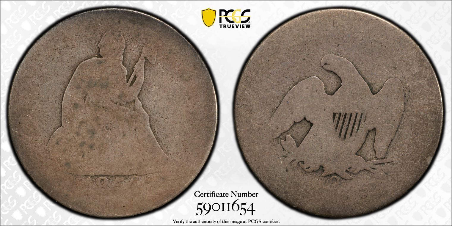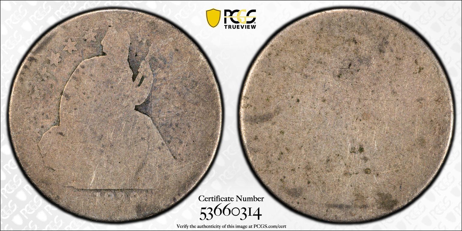 Bought raw from Harry S. in July 2022. This is another coin that is a POP 1 coin with only 1 coin graded by PCGS lower! Were dates like this and coins of the era like the 1850 of which the lowest graded is AG3, melted in the early to mid 1850's, or were heavily circulated pieces sent to the melting pots decades if not a century later when Silver jumped above normal pricing levels??