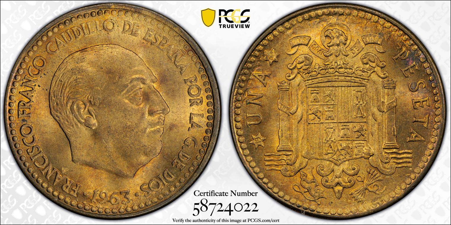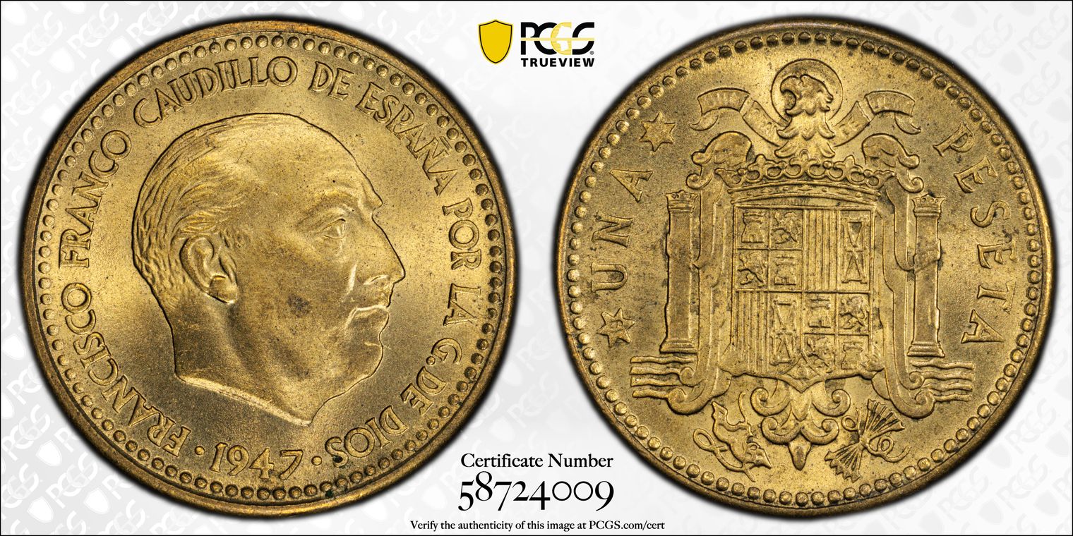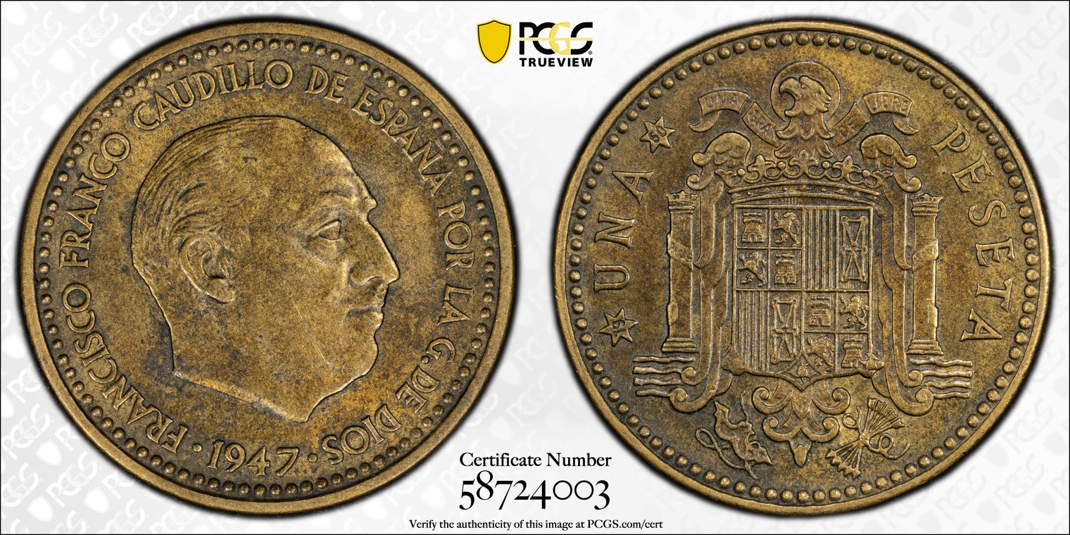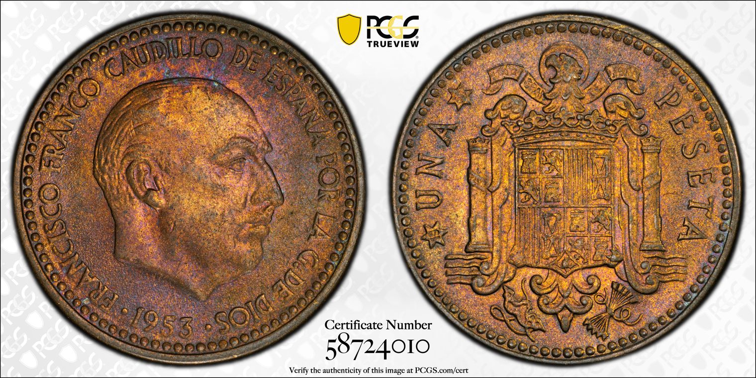 Bought these errors decades ago when other dealers in Madrid told me I was crazy for wasting my time on them! Having been stationed in Spain when these were minted and subsequent years, I have some insight on their history…. Most offered to me over the years were not gems with a large number having been cleaned and or weakly struck as many were…. Out of an estimated mintage of 30,000 pieces, many pieces were mishandled, and cleaned leaving a minuscule amount which may or may not grade choice or gem uncirculated. I would wager very few gems exist?? PCGS needs to look at their weighting system for this variety as it is NOT A common coin and should be weighted about an 8, not the 1 it is weighted at! I would surmise this variety is approximately 200 to 300 times the value of all the coins of this set combined!?