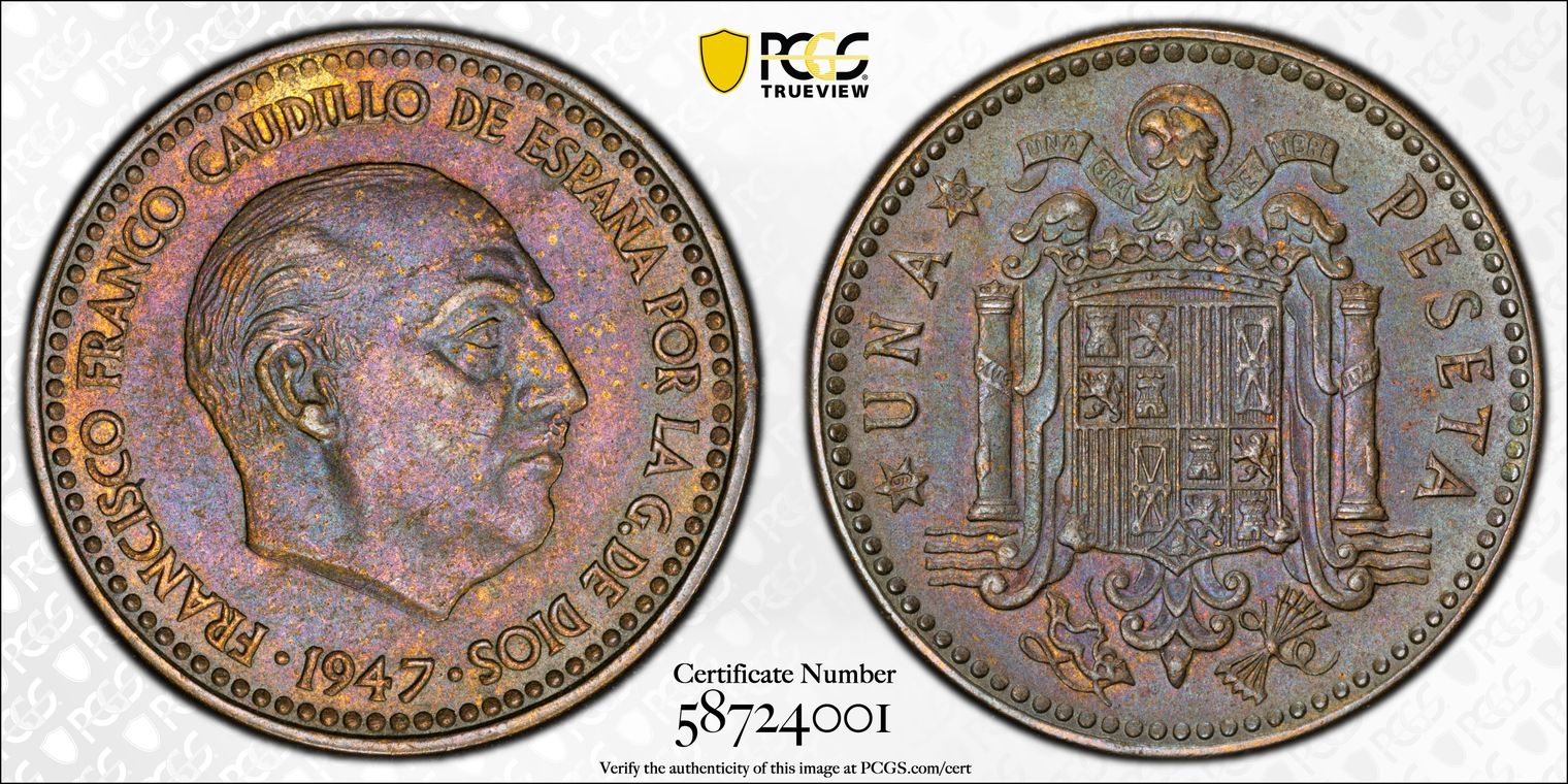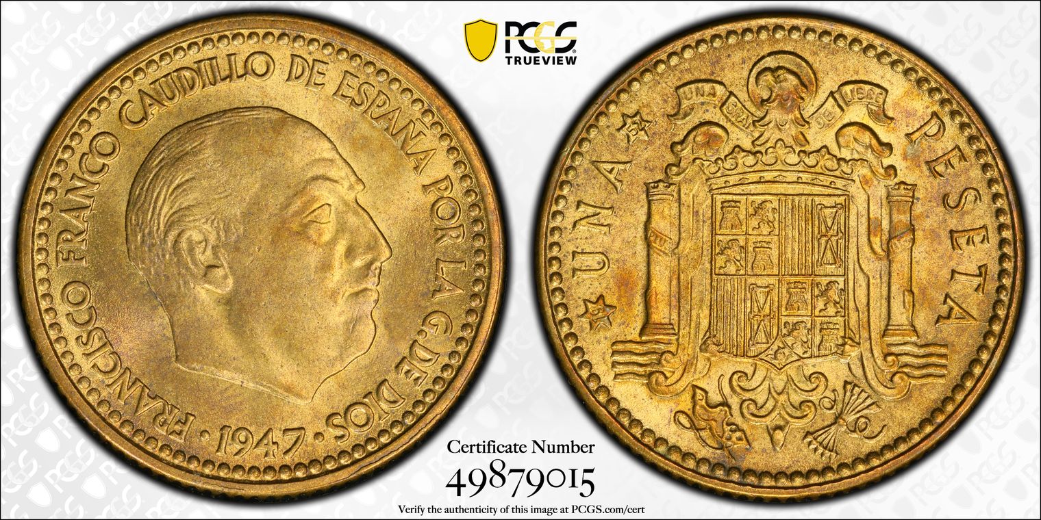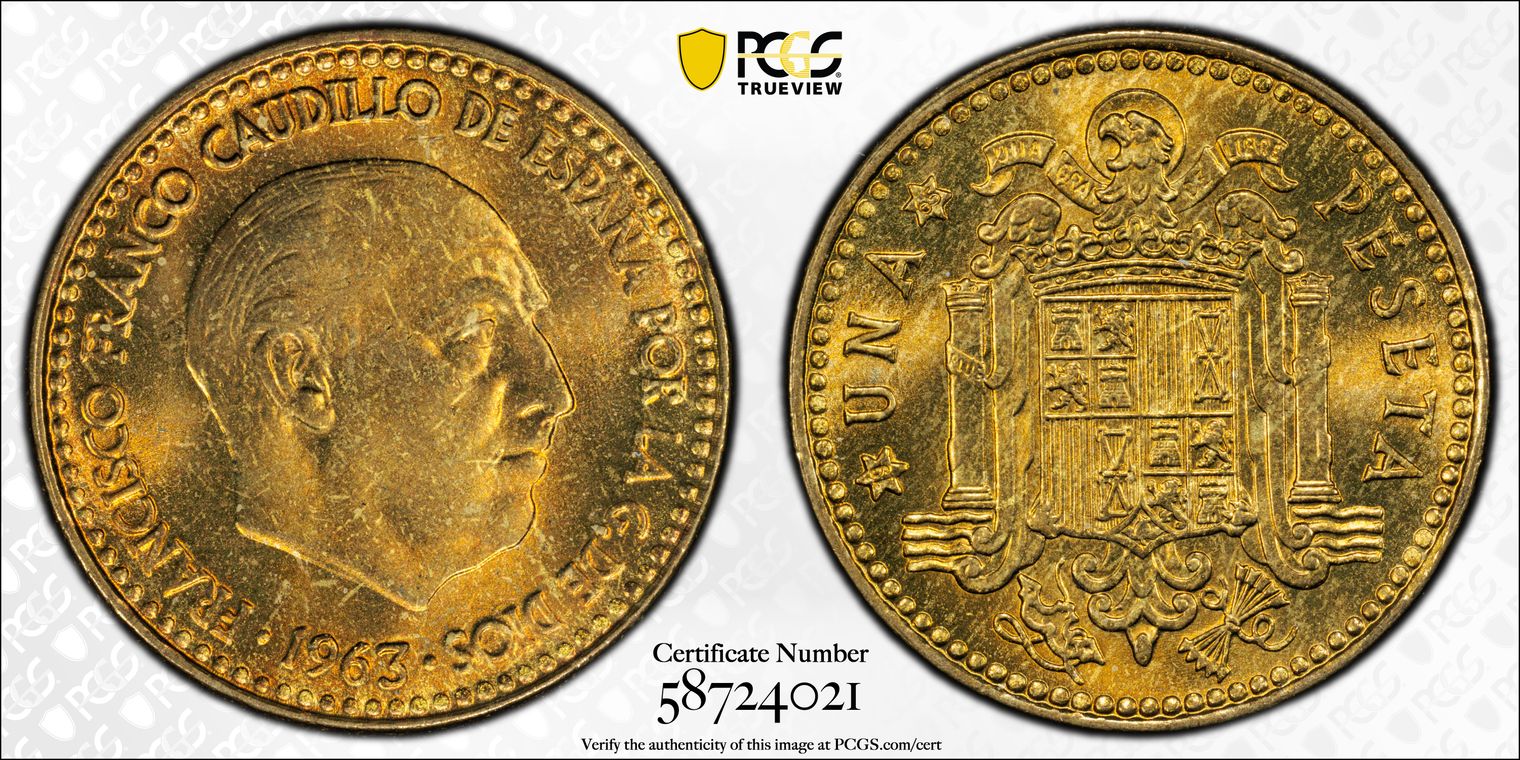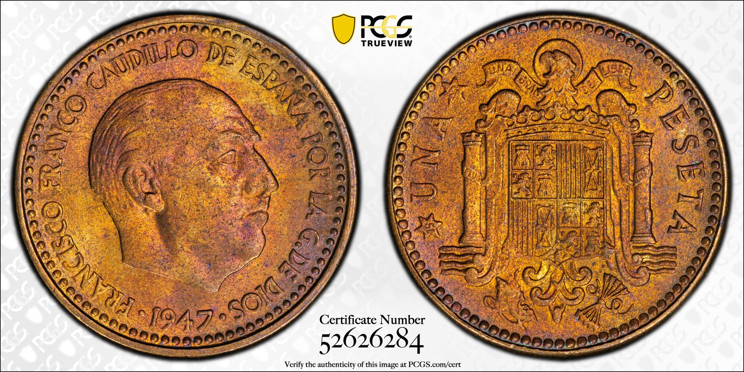 Bought these errors decades ago when other dealers in Madrid told me I was crazy for wasting my time on them! Having been stationed in Spain when these were minted and subsequent years, I have some insight on their history…. Most offered to me over the years were not gems with a large number having been cleaned and or weakly struck as many were…. Out of an estimated mintage of 30,000 pieces, many pieces were mishandled, and cleaned leaving a minuscule amount which may or may not grade choice or gem uncirculated. I would wager very few gems exist?? PCGS needs to look at their weighting system for this variety as it is NOT A common coin and should be weighted about an 8, not the 1 it is weighted at! I would surmise this variety is approximately 200 to 300 times the value of all the coins of this set combined!?