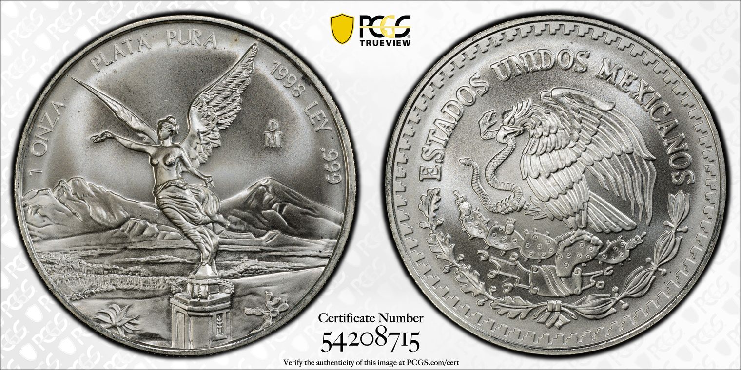 1998-Mo Onza Libertad Ag Die Chip at Eagle's Head MS67