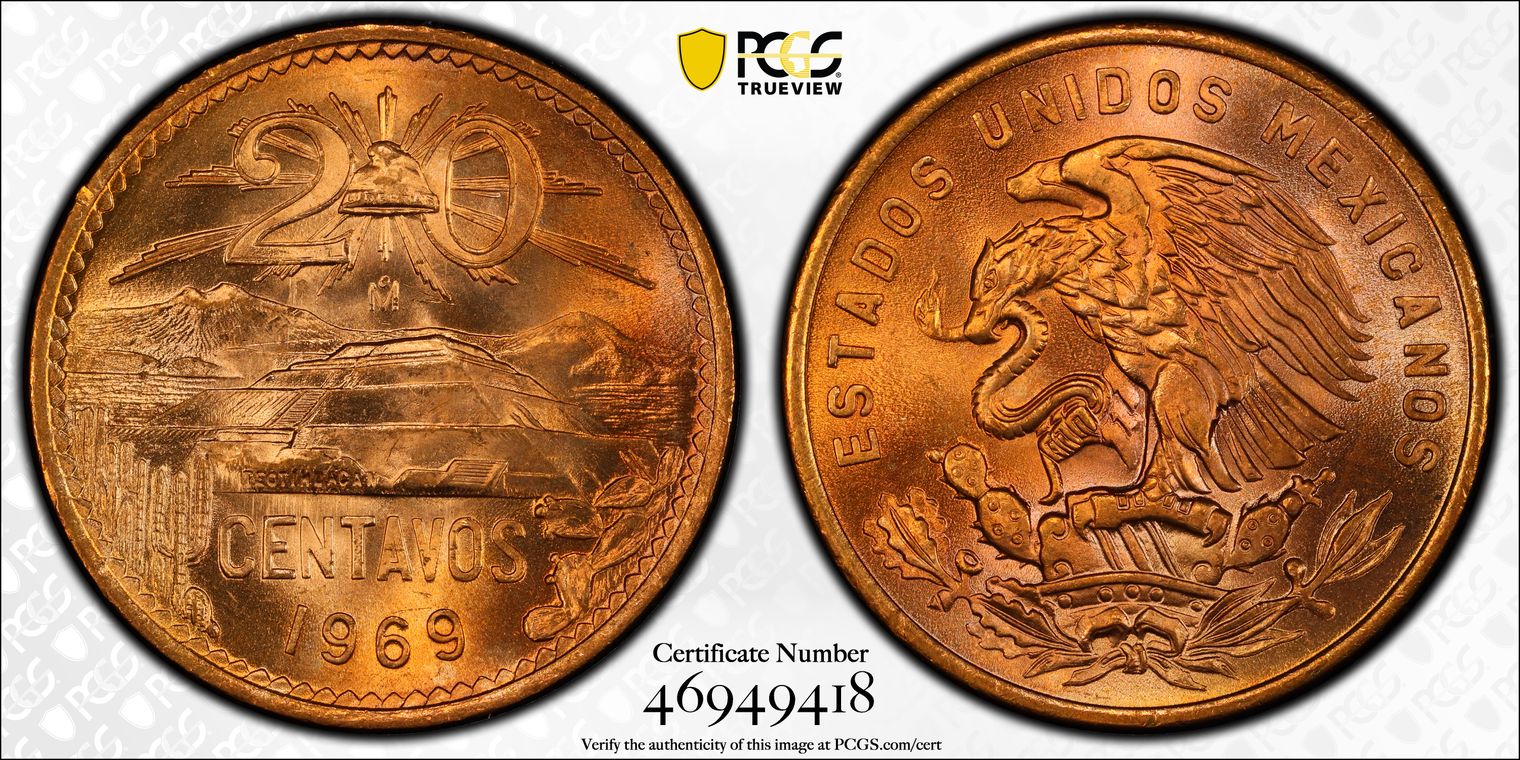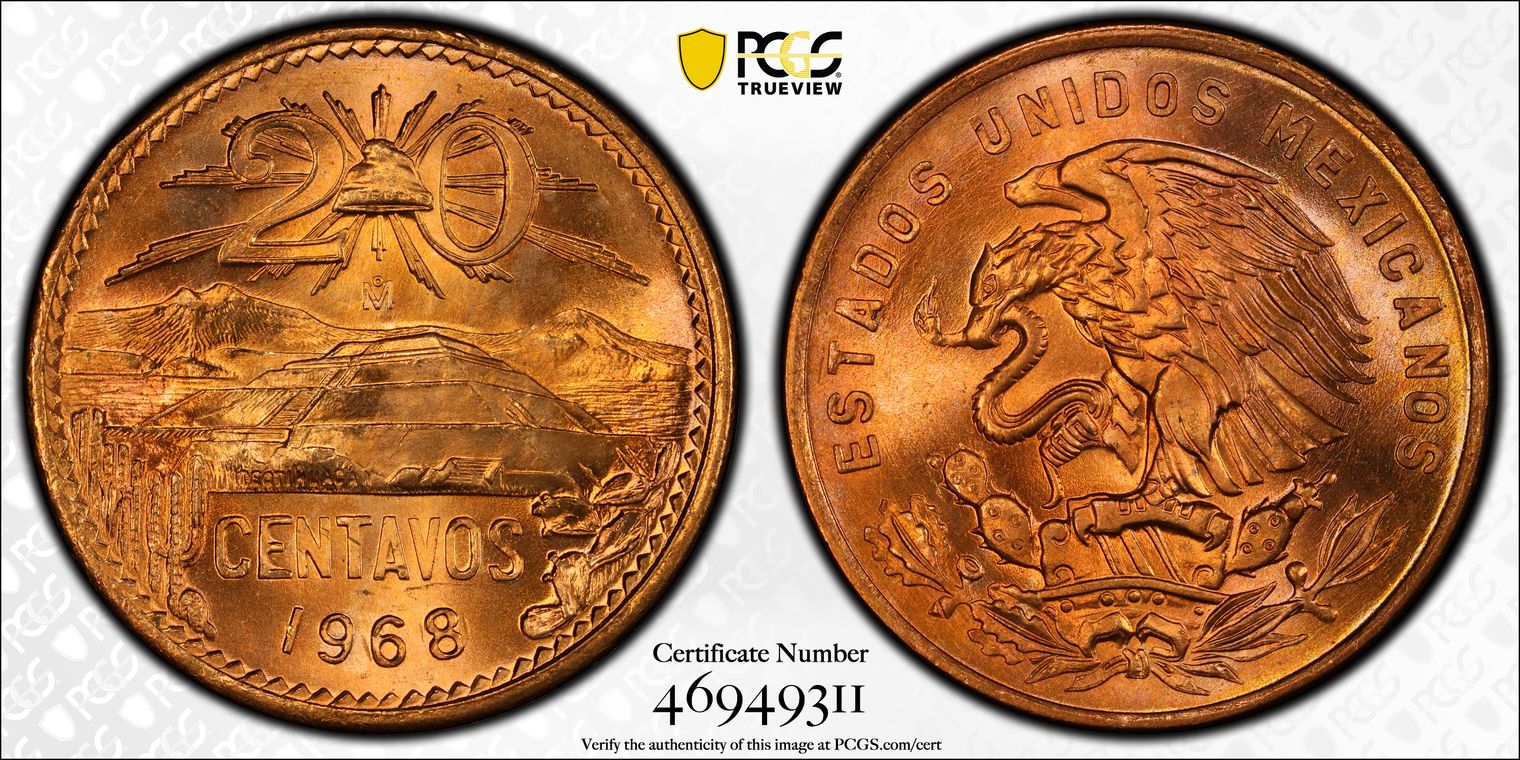 1968-Mo 25 Peso Olympic KM-479.1 Rings Align, Straight Tongue MS66