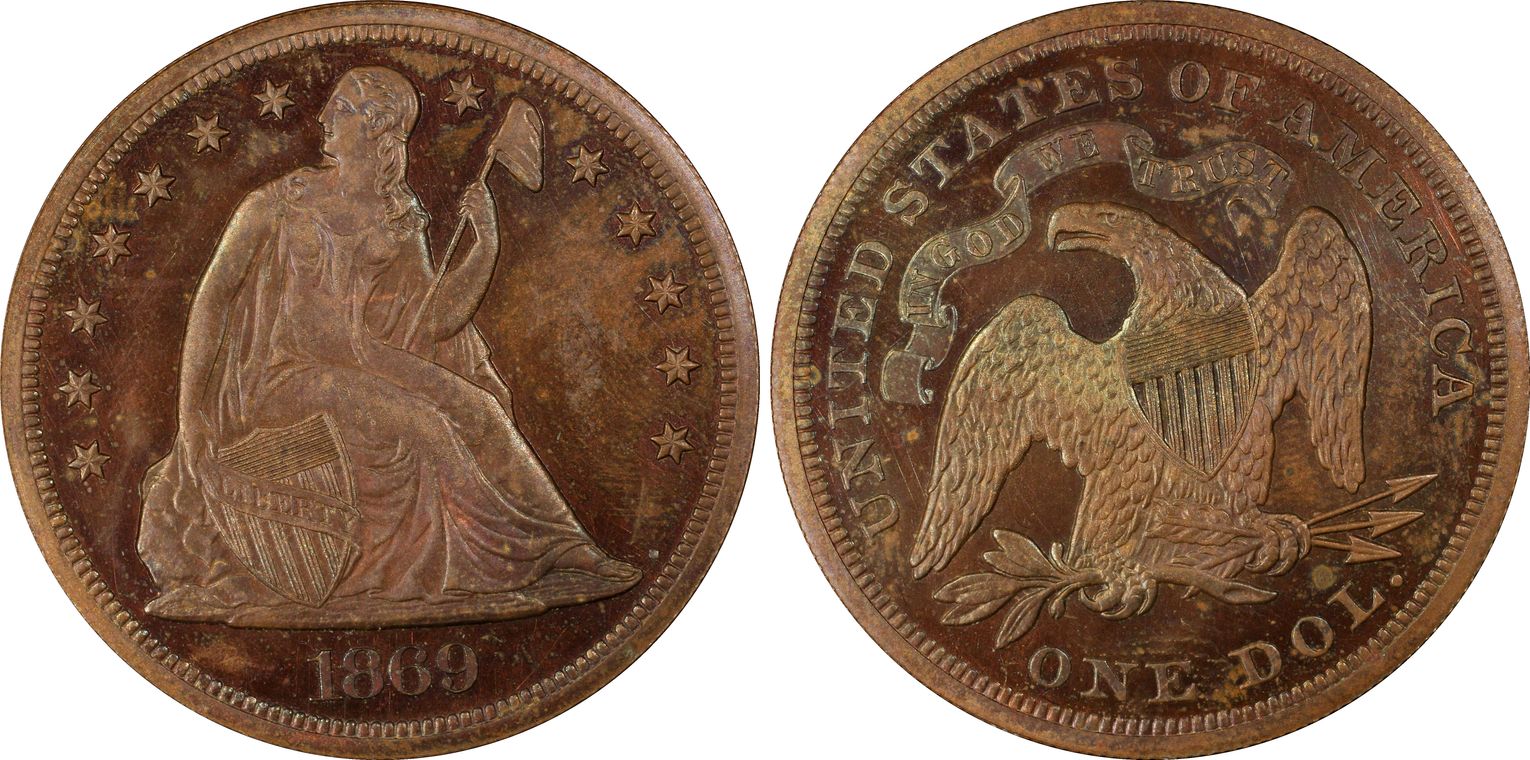 Pollock-489, Rarity: Low R.7, PR64 Red, CAC Endorsed Stuck in Copper with plain edge Provenance/Appearances: THE SEATTLE COLLECTION Legends Auction #37 Mar 2020 /Lot121; Heritage Sept 2007 Long Beach, / Lot #3014 & also The Superior Sept 1999 Pre-Long Beach Sale / Lot 1384 ($3100) The latter 2 As NGC PF64RD