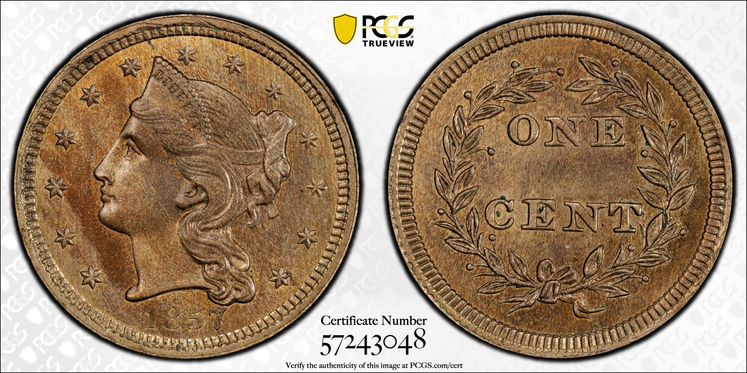 Pollock-57, Rarity: Low R.6, CAC Endorsed. Ex: Simpson Struck in Copper with Plain Edge Provenance/Appearances: From the Bob Simpson Collection Pt 2, Heritage Nov 2020 Auction /Lot 3096, Prior David Akers Oct 1997 The John Jay Pittman Collection: Part 1 / Lot # 770 with Note Prior Purchased by John Pittman for 55$ as Lot 5 from Abe Kosoff’s 1958 ANA Convention sale
