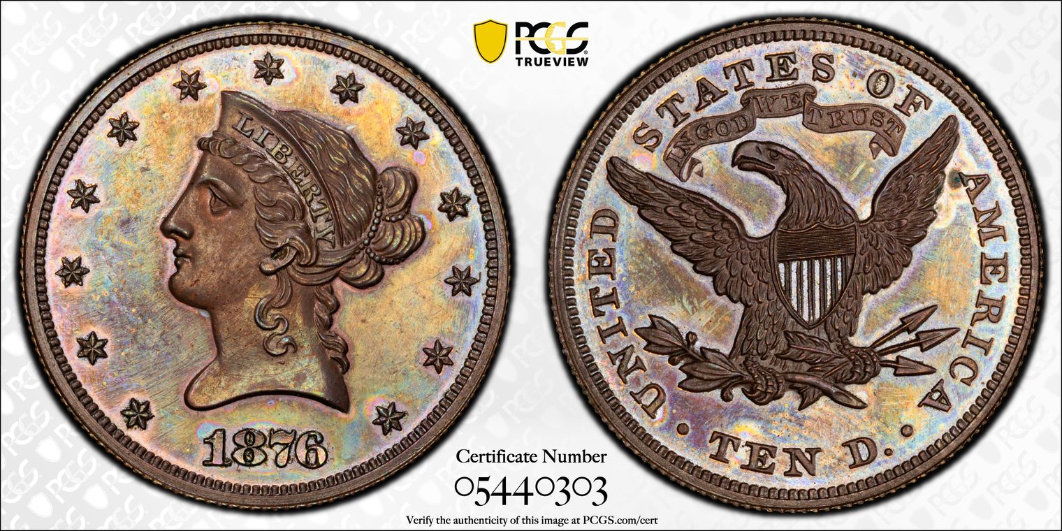 Pollock-657, Rarity: High R.7, Provenance/Appearances: From The Pacific Rim Collection, Heritage Nov. 2021 Dallas / Lot #3748; Prior Ex: Heritage Aug 2011 Chicago / Lot #7735, Stacks-Bowers Feb 2008 The Rich Uhrich Collection / Lot # 1714; John E. Drew Collection, Bowers and Merena Mar 1996, The Sebring and Garbe Collections / Lot #2061; and in these last 2 Stacks & Bowers confirms this piece also was From Rarcoa's sale of the Harry X Boosel Collection, April 1972, / Lot #1057; Superior's ANA Convention Sale, August 1975, / Lot #1259; Bowers and Ruddy's sale of the Branigan Collection, August 1978, / Lot #1838; and Superior's session of Auction '79, / Lot #1626