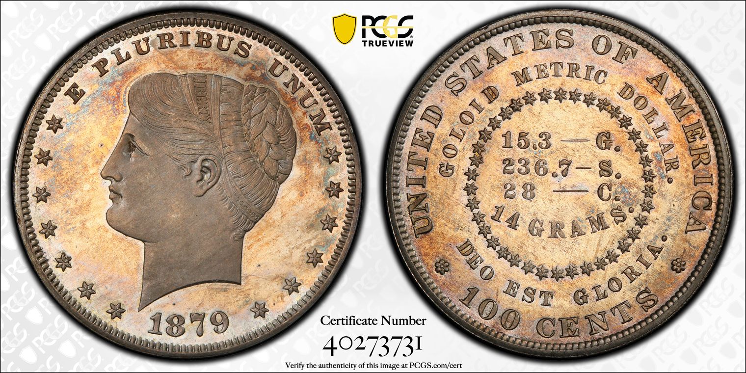 Pollock-662, Rarity: R.8, PR61 Struck in Silver with Reeded Edge Ex: William H. Woodin; Waldo C. Newcomer; King Farouk; Palace Collections of Egypt Sale (Sotheby's, 2/1954), lot 1807; Kreisberg & Schulman Feb 1960 Lot # 2440; Gaston DiBello Collection, Part II (Stack's, 5/1970), lot 480; William R. Sieck Collection (Bowers and Ruddy, 7/1981), lot 329. From The Harry W. Bass, Jr. Core Collection, Part II. I. Heritage Jan 2023 Fun Lot # 9061