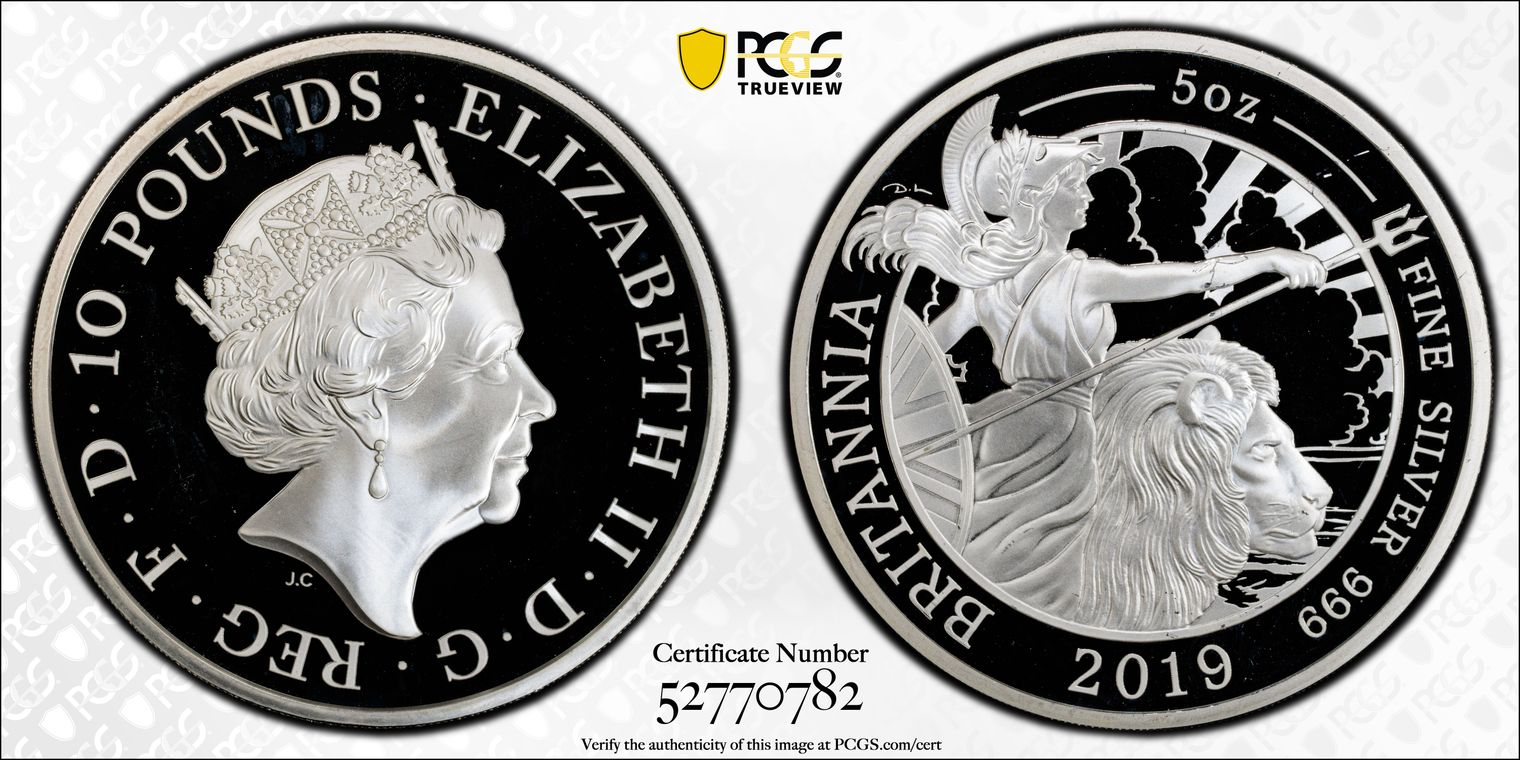 2019 £10 Britannia 5oz Ag PR68DCAM