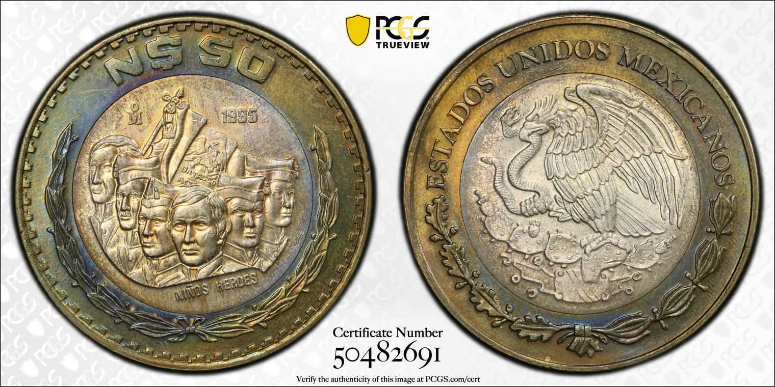 1995-Mo 50 Peso Niños Heroes KM-571 Ag / AlBr MS64