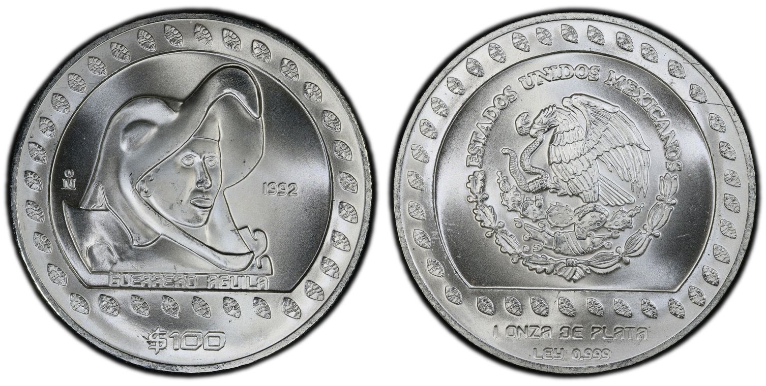 1992-Mo 100 P Guerrero Aguila KM-556 Ag MS63