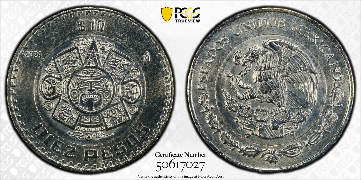 2024-Mo 10 Peso Struck on Ni-Brass Planchet MS65