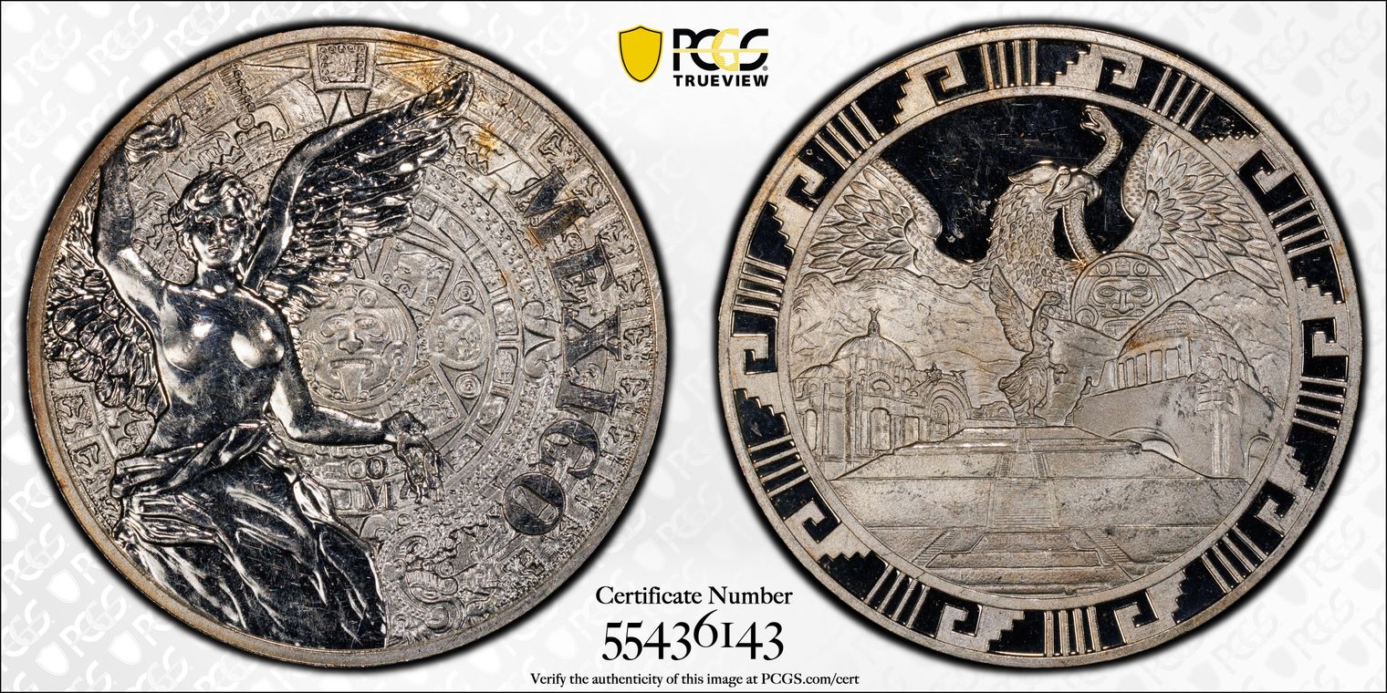 (2016)-Mo Medal "Mexican Elements" Ag 1oz Later Type PR62