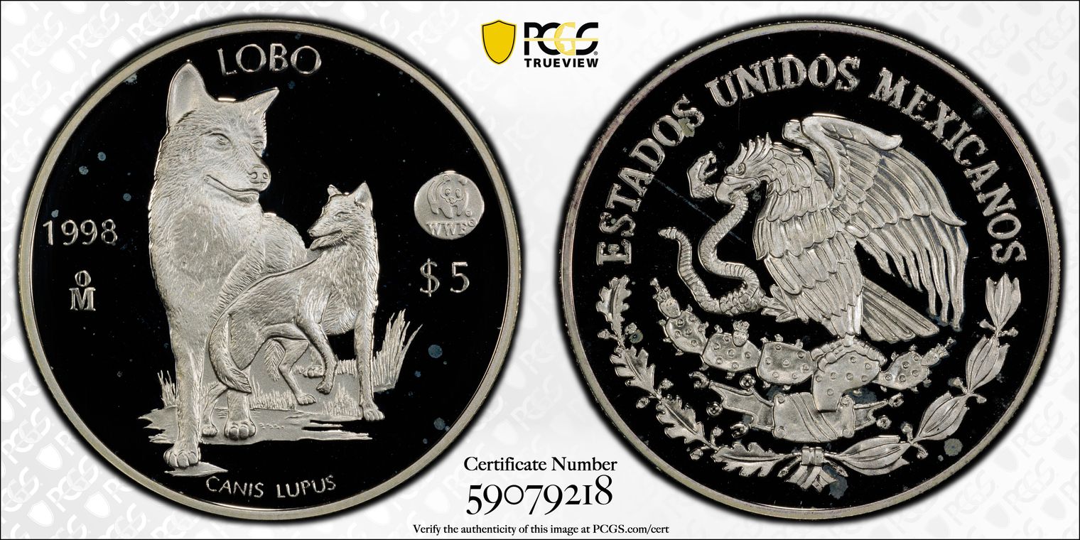 1998-Mo 5 Peso World Wildlife Fund - Lobo PR66DCAM