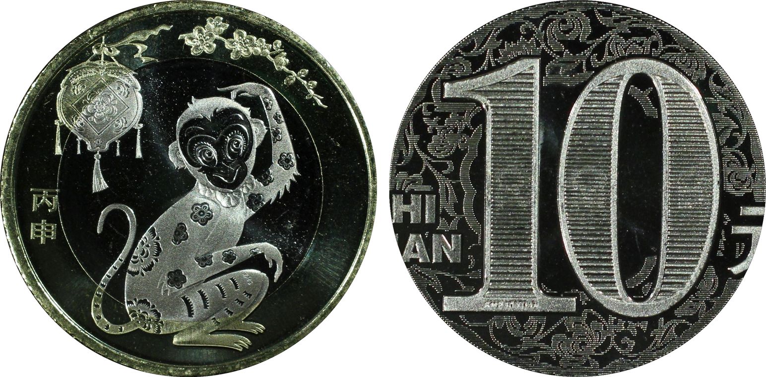 2016 10 Yn Monkey Bi-Metallic Sun-J105a MS69PL