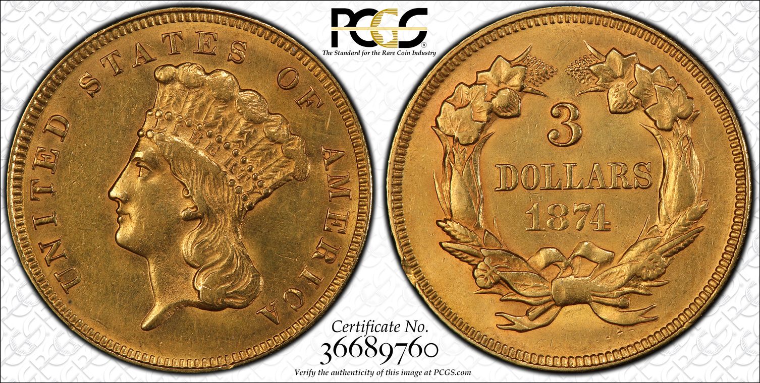 1874 $3 AU58