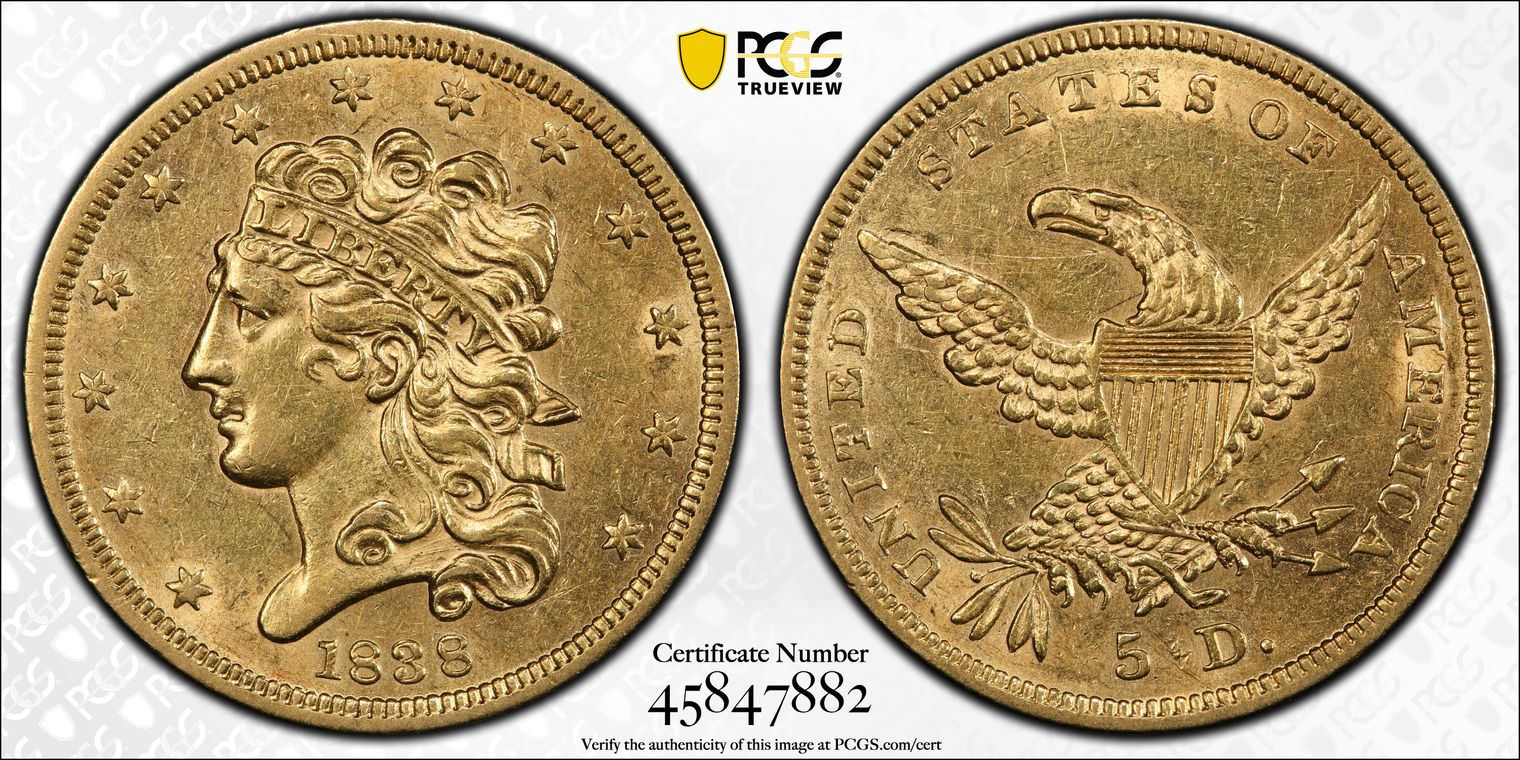 1838 $5 AU55