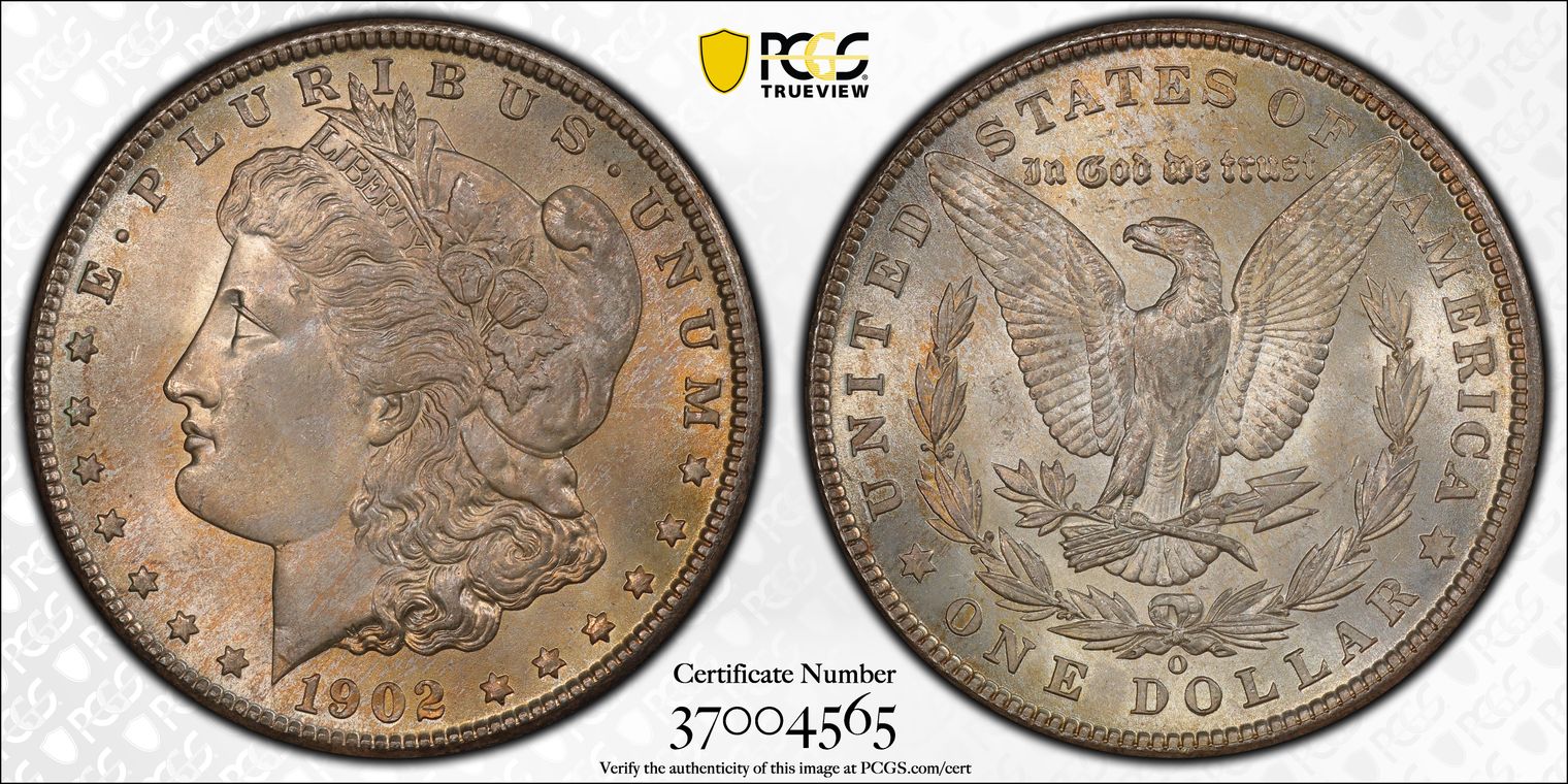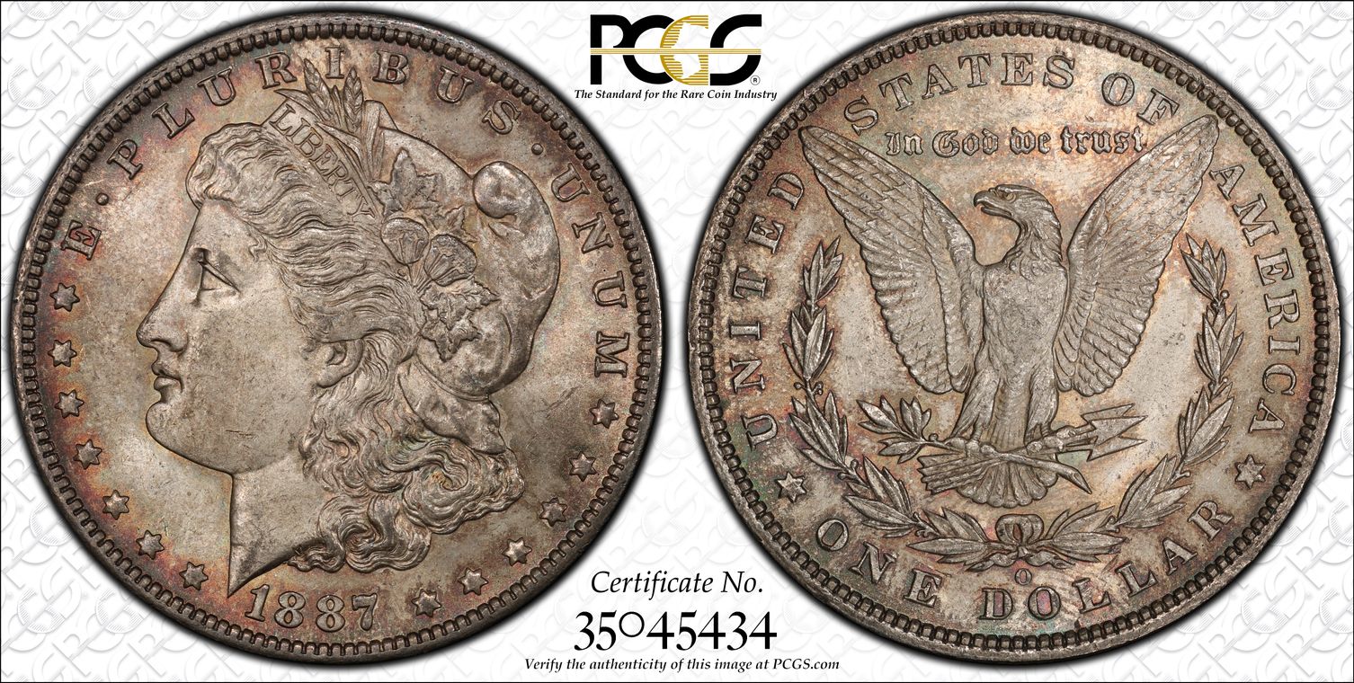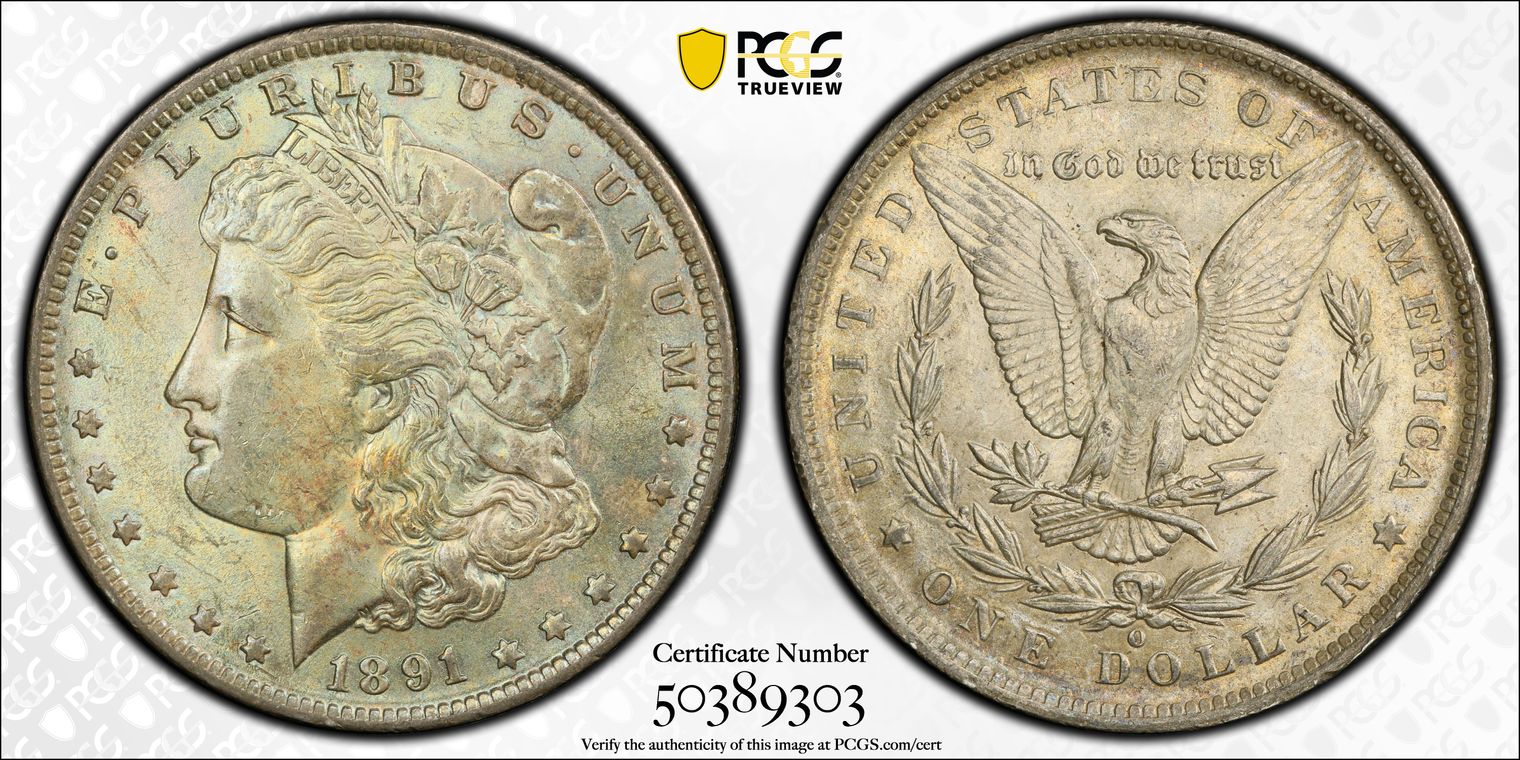 Attractive blast-white core with subtle golden rim toning | Sharp details on hair, stars, and eagle feathers above average for New Orleans mint | Clean fields and devices with minor scattered marks and strong frosty cartwheel luster on both sides, with boom visible through subtle toning