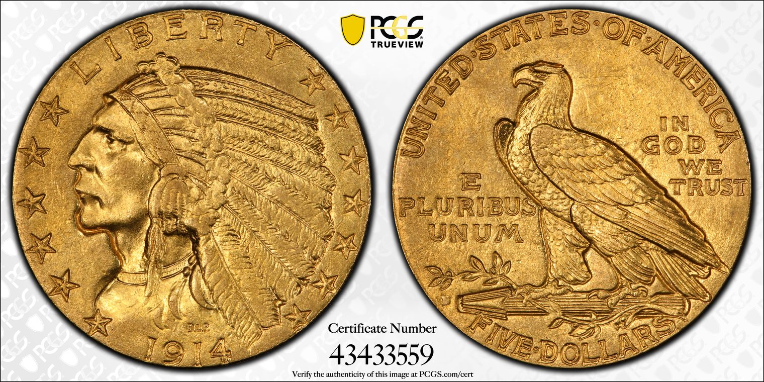 1914-D $5 AU55