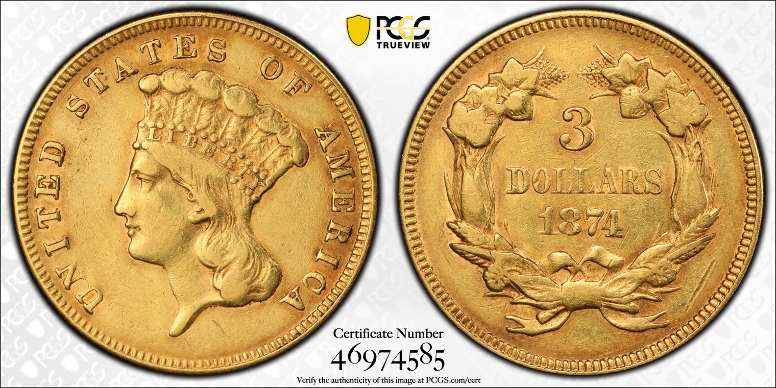 1874 $3 XF40