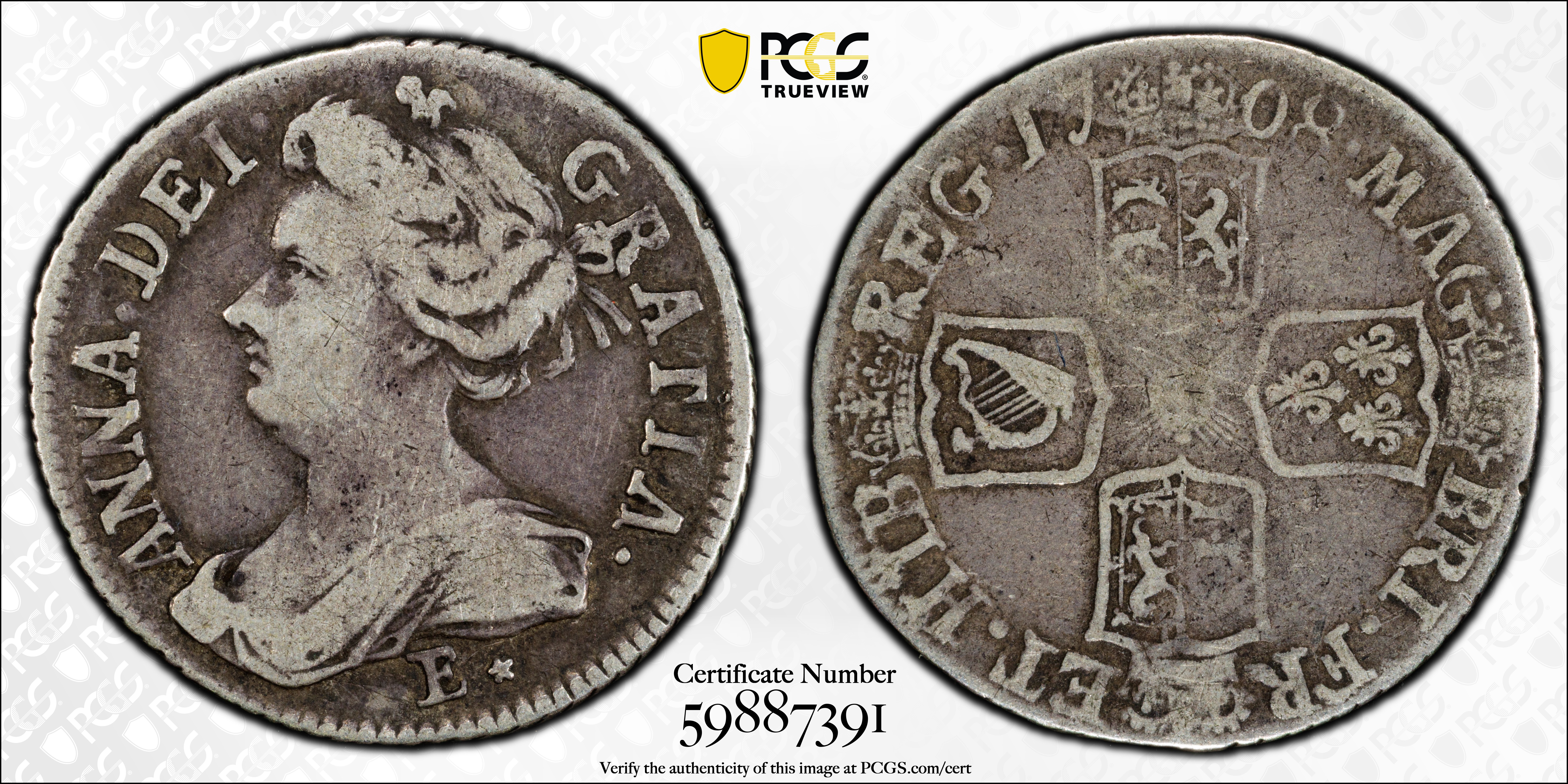 1708-E* 6D S-3622 Edinburgh bust F12 Certification #59887391, PCGS #222446