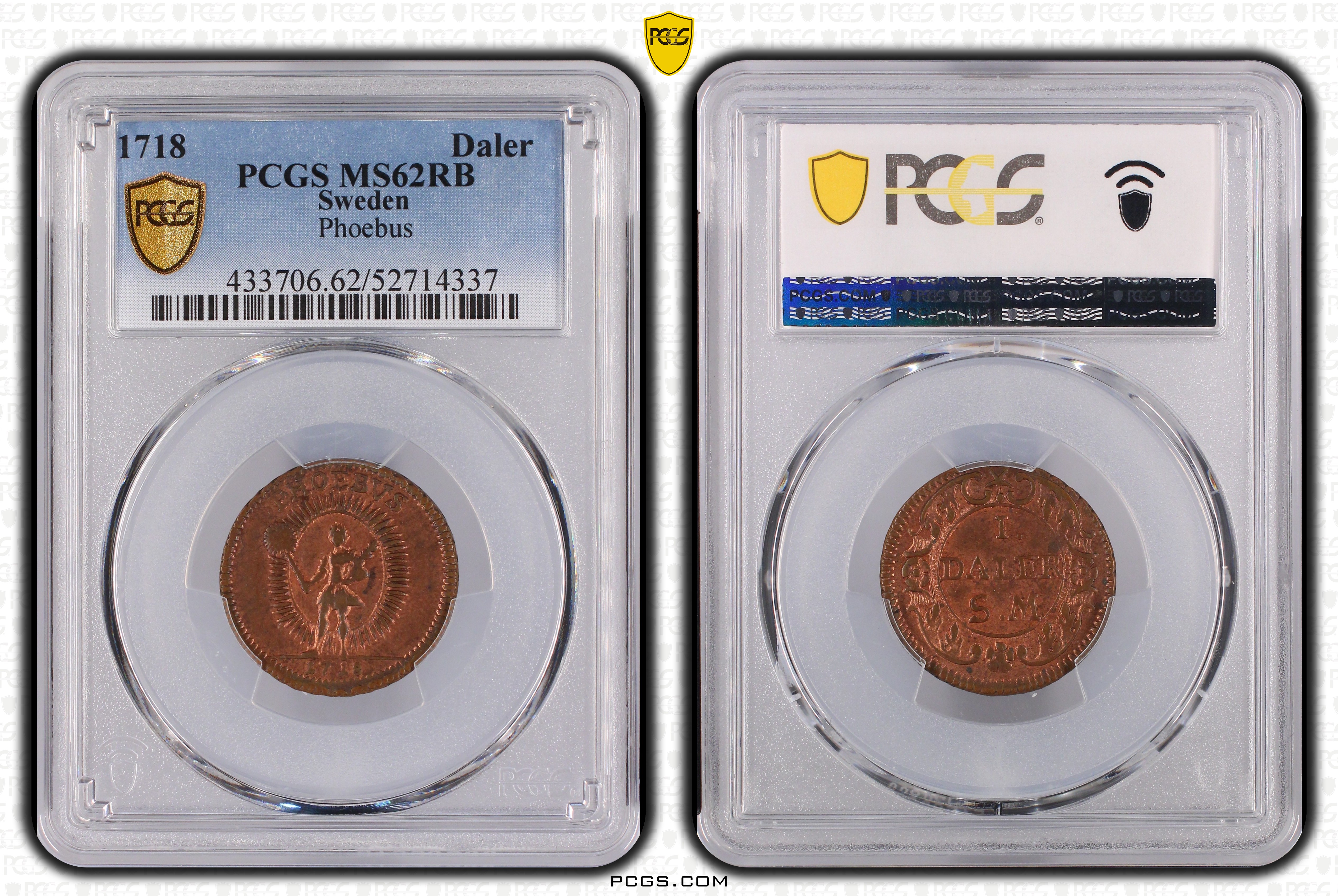 1718 Daler Phoebus, RB MS62RB Certification #52714337, PCGS #433706