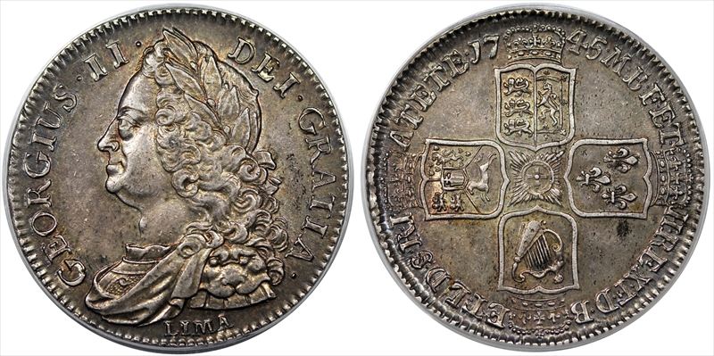 1745 1/2 Cr S-3695 LIMA AU55 Certification #04872220, PCGS #616351
