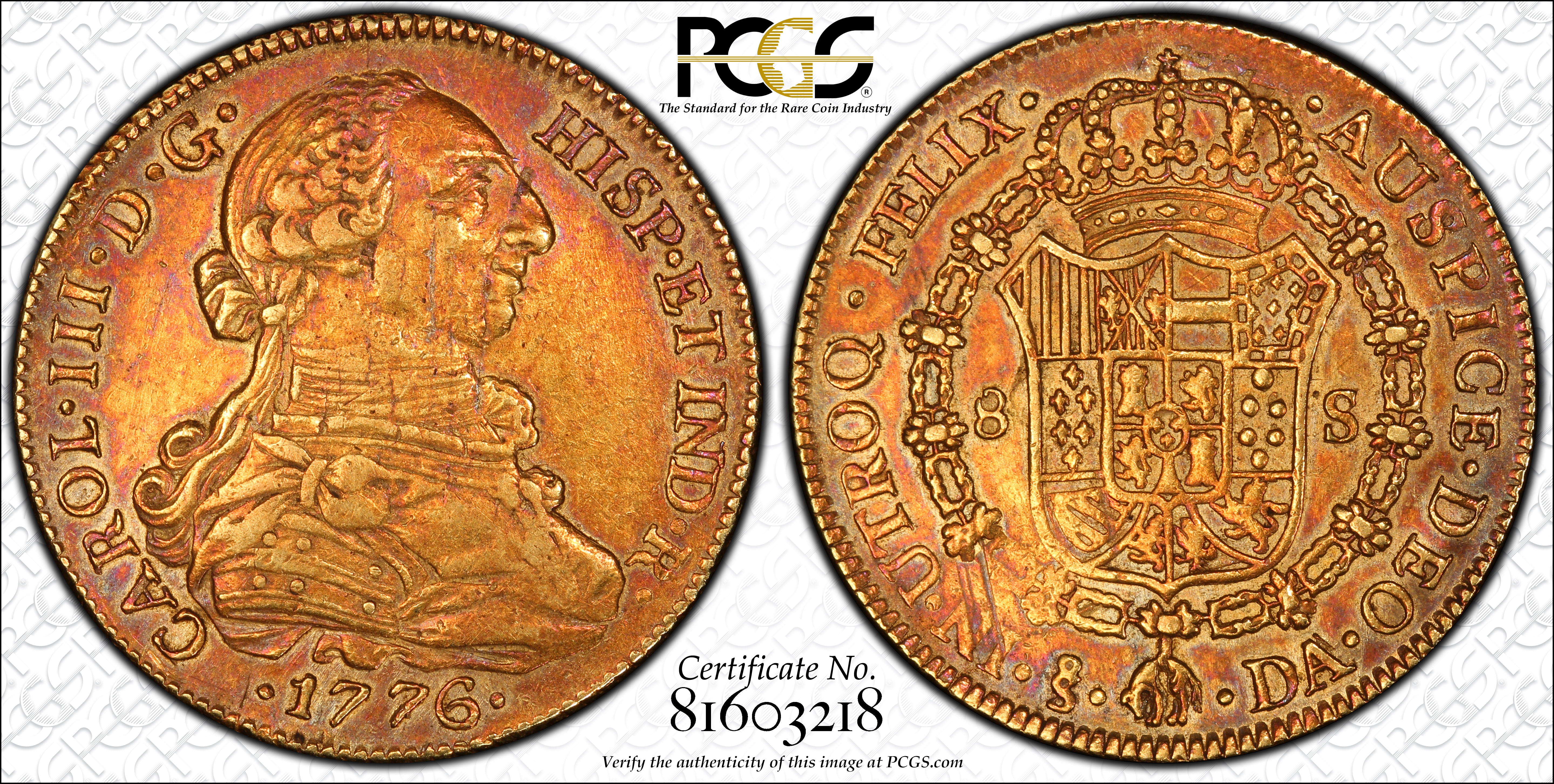 1776-So DA 8 Esc Calico-2152 XF45 Certification #81603218, PCGS #720467