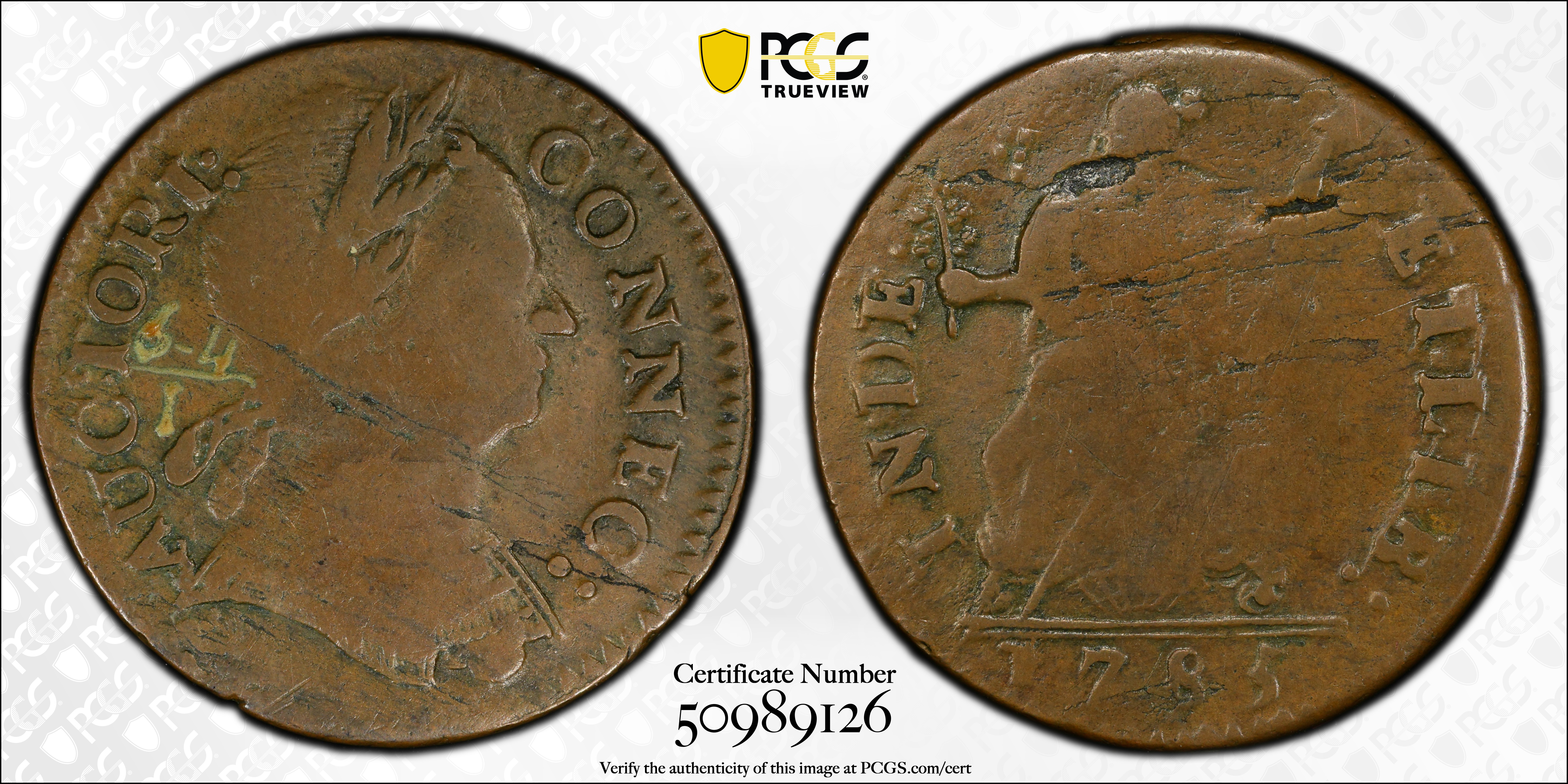 1785 CT 1/2P Bust Right, Miller 6.4-I, BN F12BN Certification #50989126, PCGS #686816