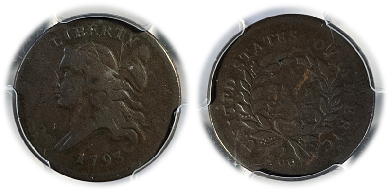 In his Encyclopedia of United States Half Cents: 1793-1857, Walter Breen noted that the Philadelphia Mint prepared two obverse and three reverse dies for this issue between April and July 1793. The initial design and dies were prepared by Henry Voigt. While Breen postulated that Mint Director David Rittenhouse may have been the designer, half cent expert Bill Eckberg dismisses this theory. In his book, The Half Cent, 1793-1857: The Story of America’s Greatest Little Coin (2019), Eckberg instead links the Liberty figure to Voigt's 1792 Bust Half Disme (#11020) design.