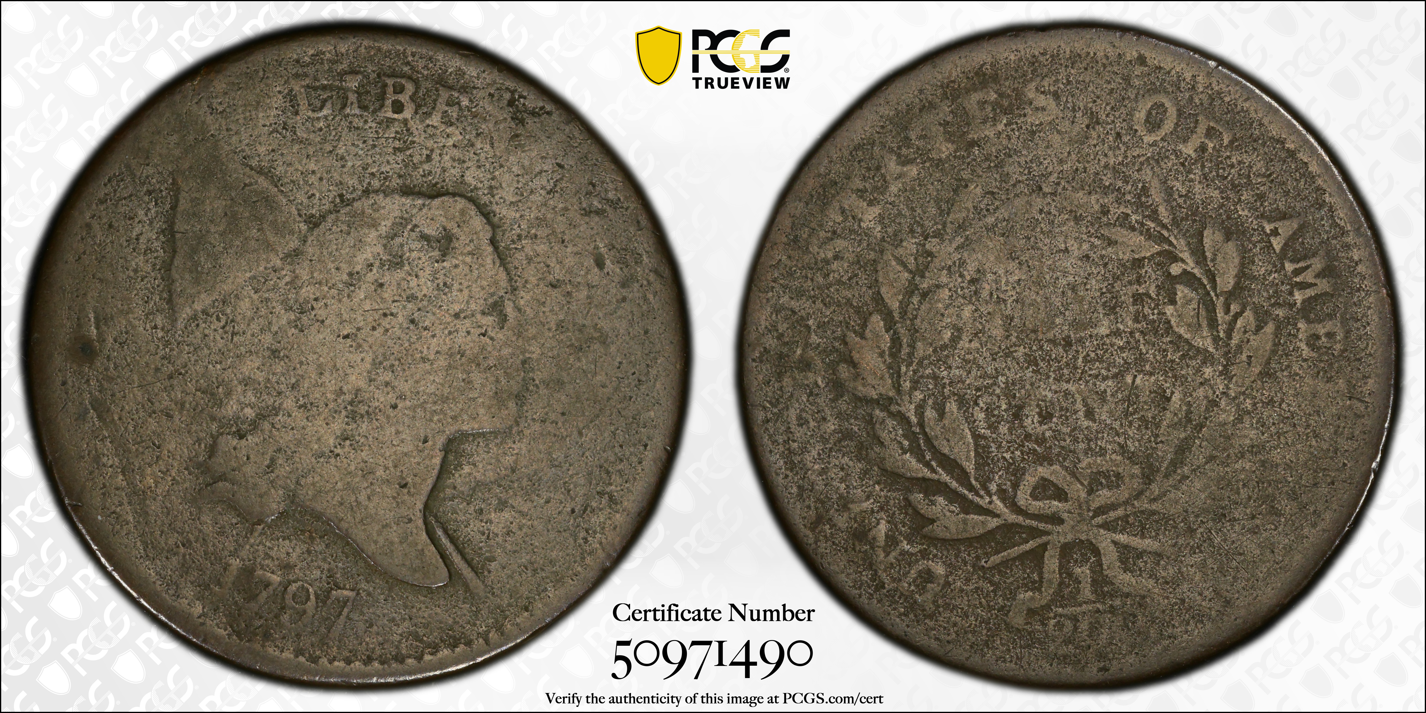 1797 1/2C 1 Above 1, BN FR2BN Certification #50971490, PCGS #1042
