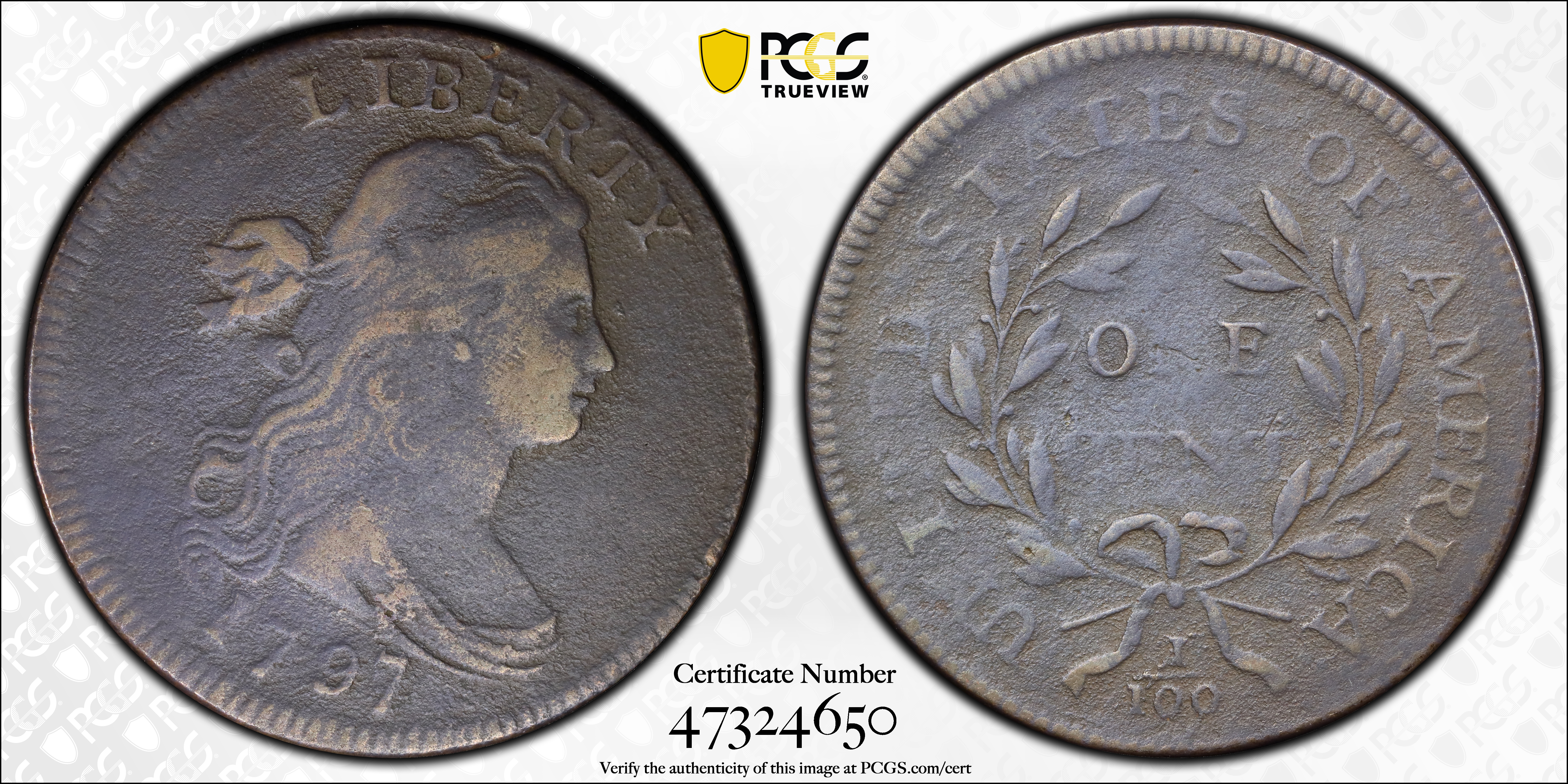 1797 1C Reverse of 1795, BN N1BN Certification #47324650, PCGS #1419