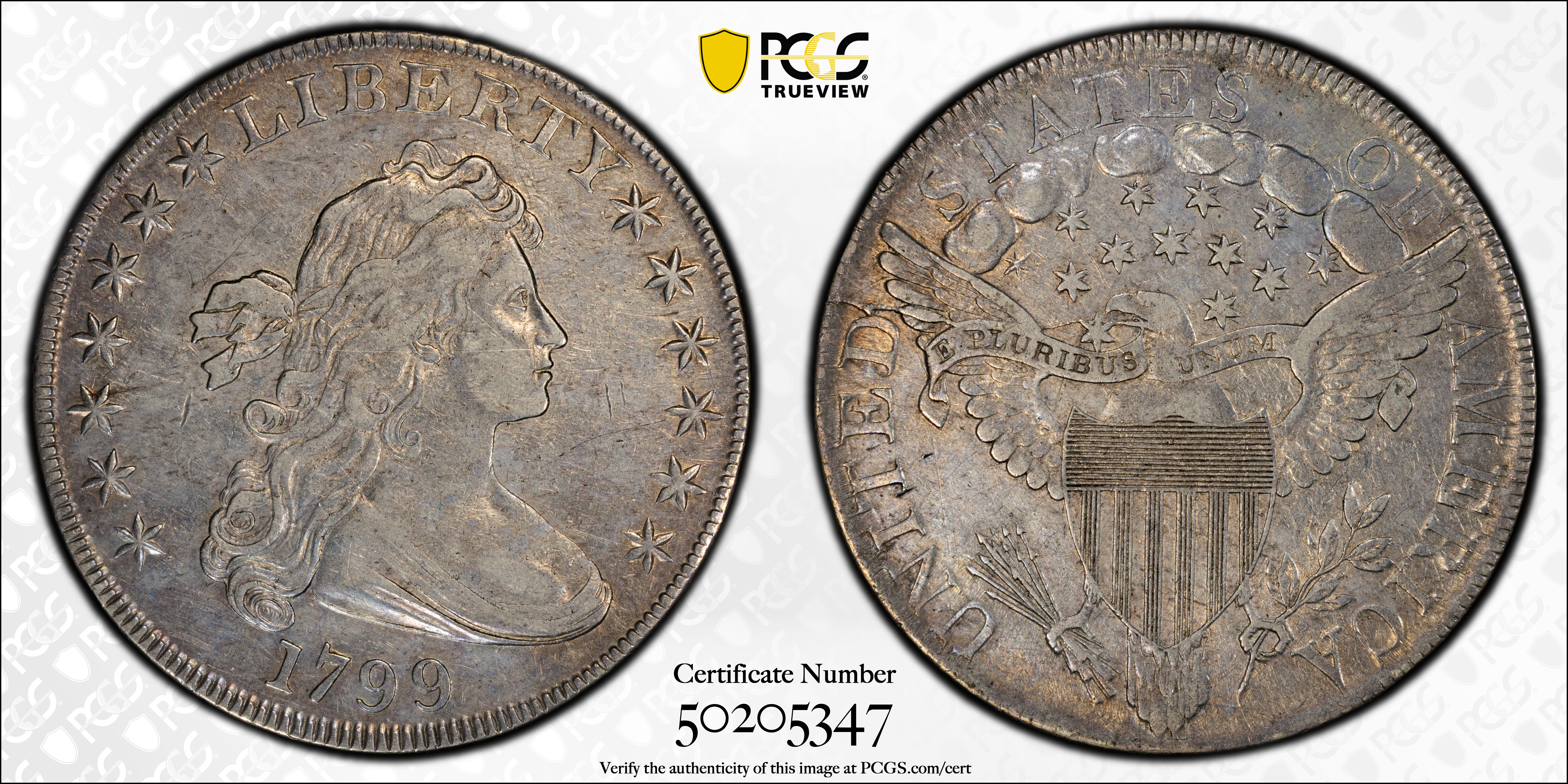 1799 $1 XF45 Certification #50205347, PCGS #6878