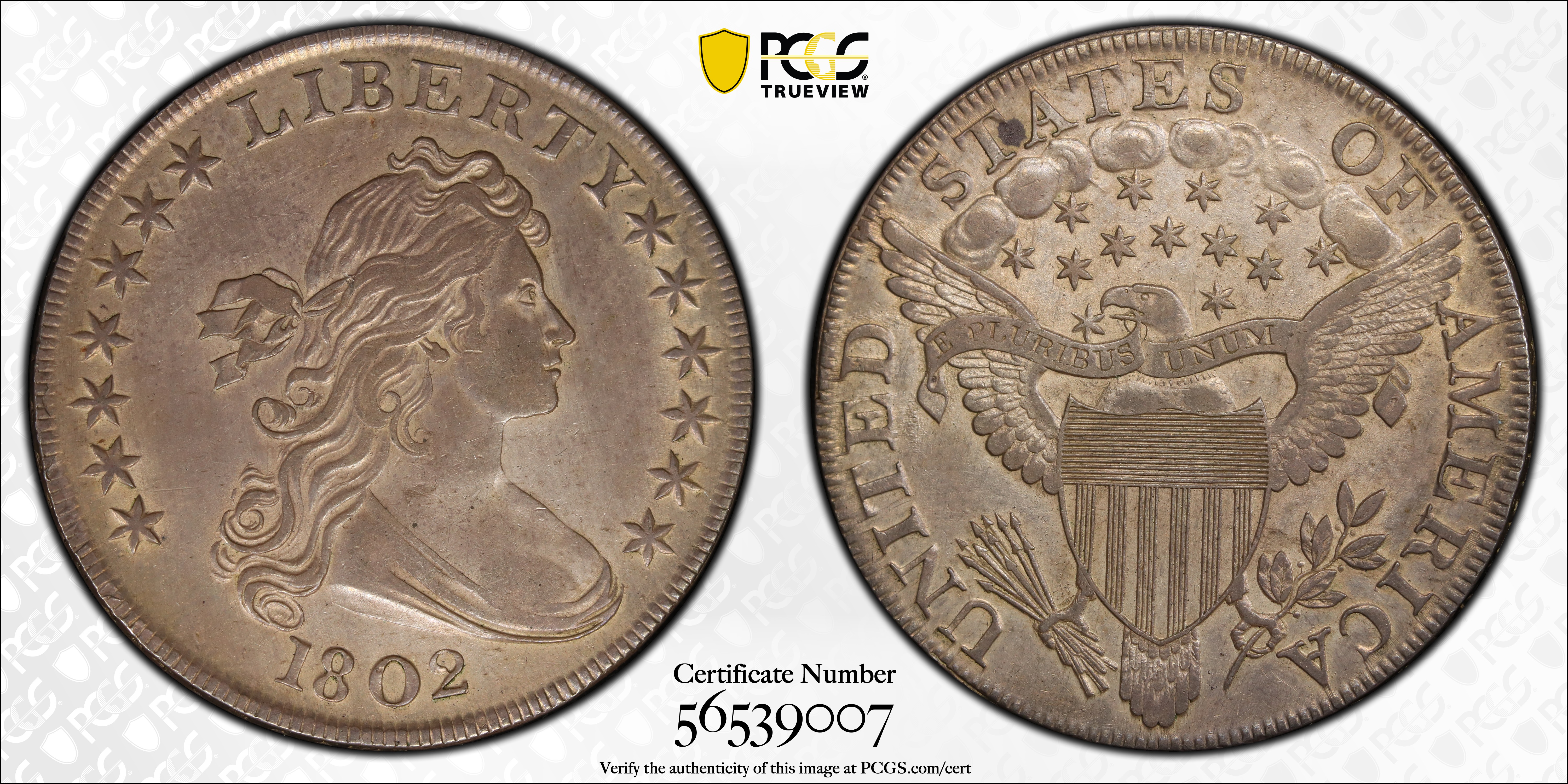1802 $1 AU50 Certification #56539007, PCGS #40087
