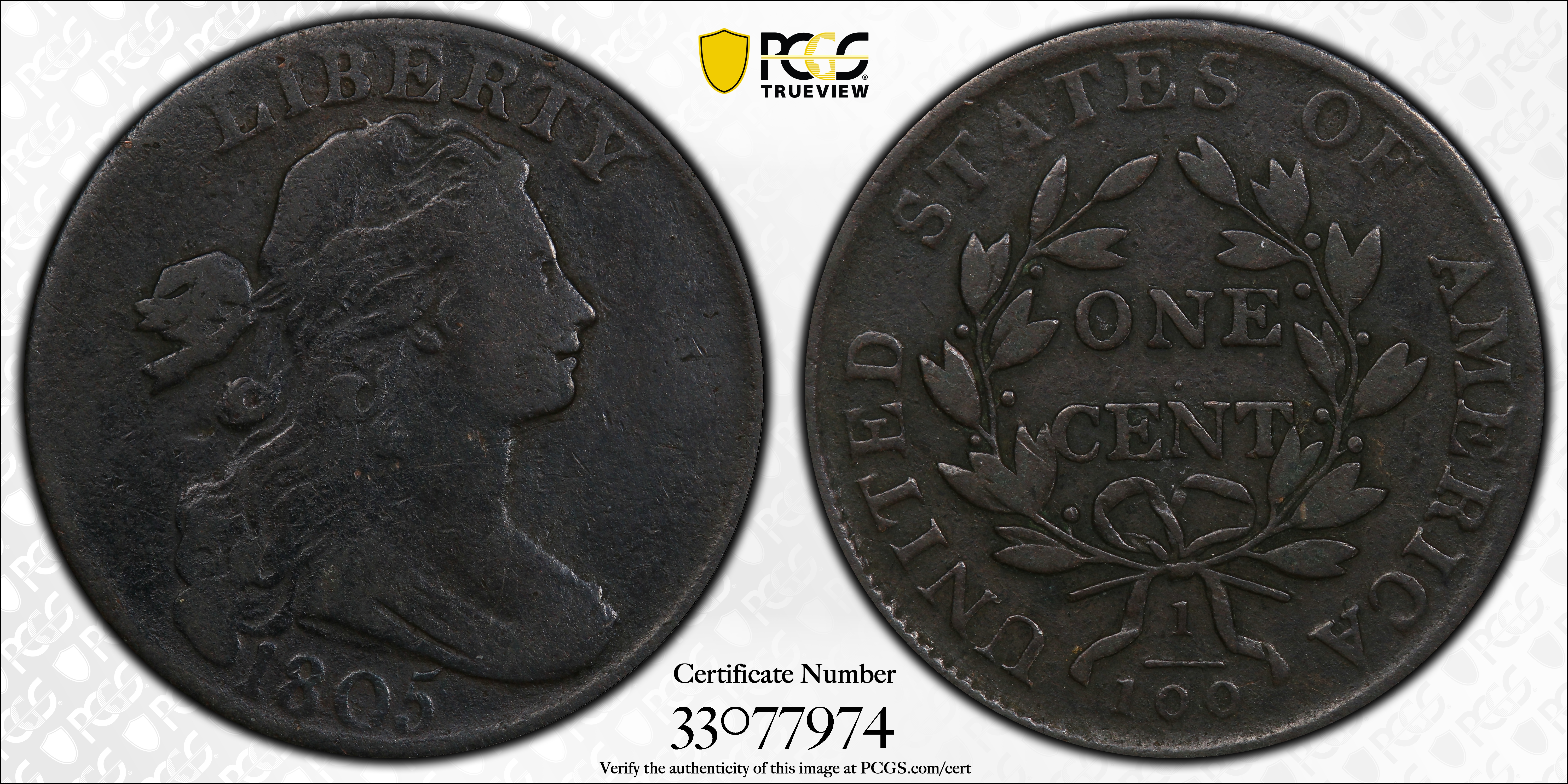 1805 1C, BN F15BN Certification #33077974, PCGS #1510