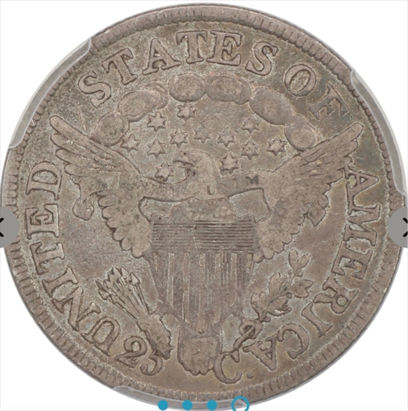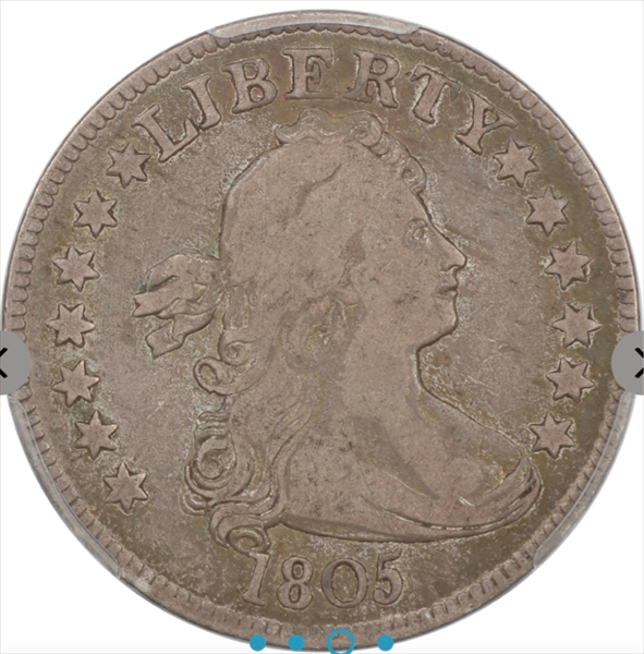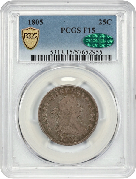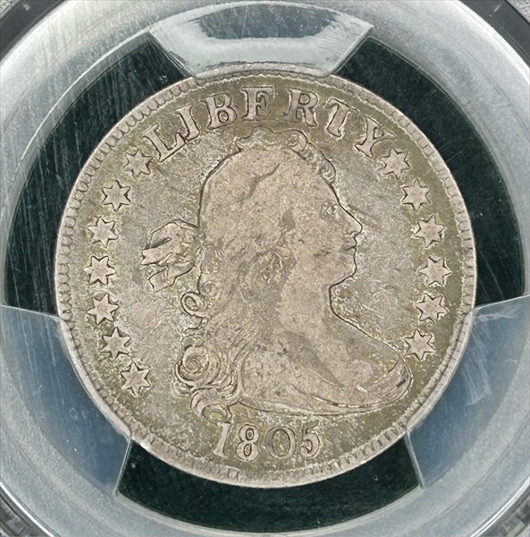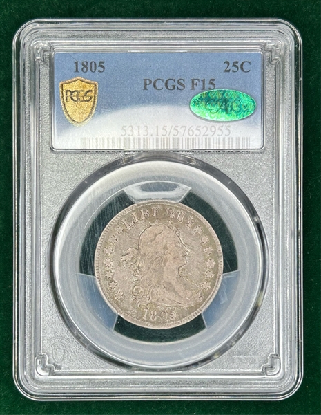 In 1805, a real effort was made to produce Quarter Dollars for circulation. The result was a large mintage of over 120,000 pieces, easily eclipsing the tiny mintages of 1796 and 1804. Hundreds of certified, circulated examples complement the many raw pieces that are available to collectors. Mint State examples are a bit more elusive and far more expensive. The most frequently-seen grade is MS63, where at least a dozen examples are known. MS64 examples are rare, and only one example is known in MS65.