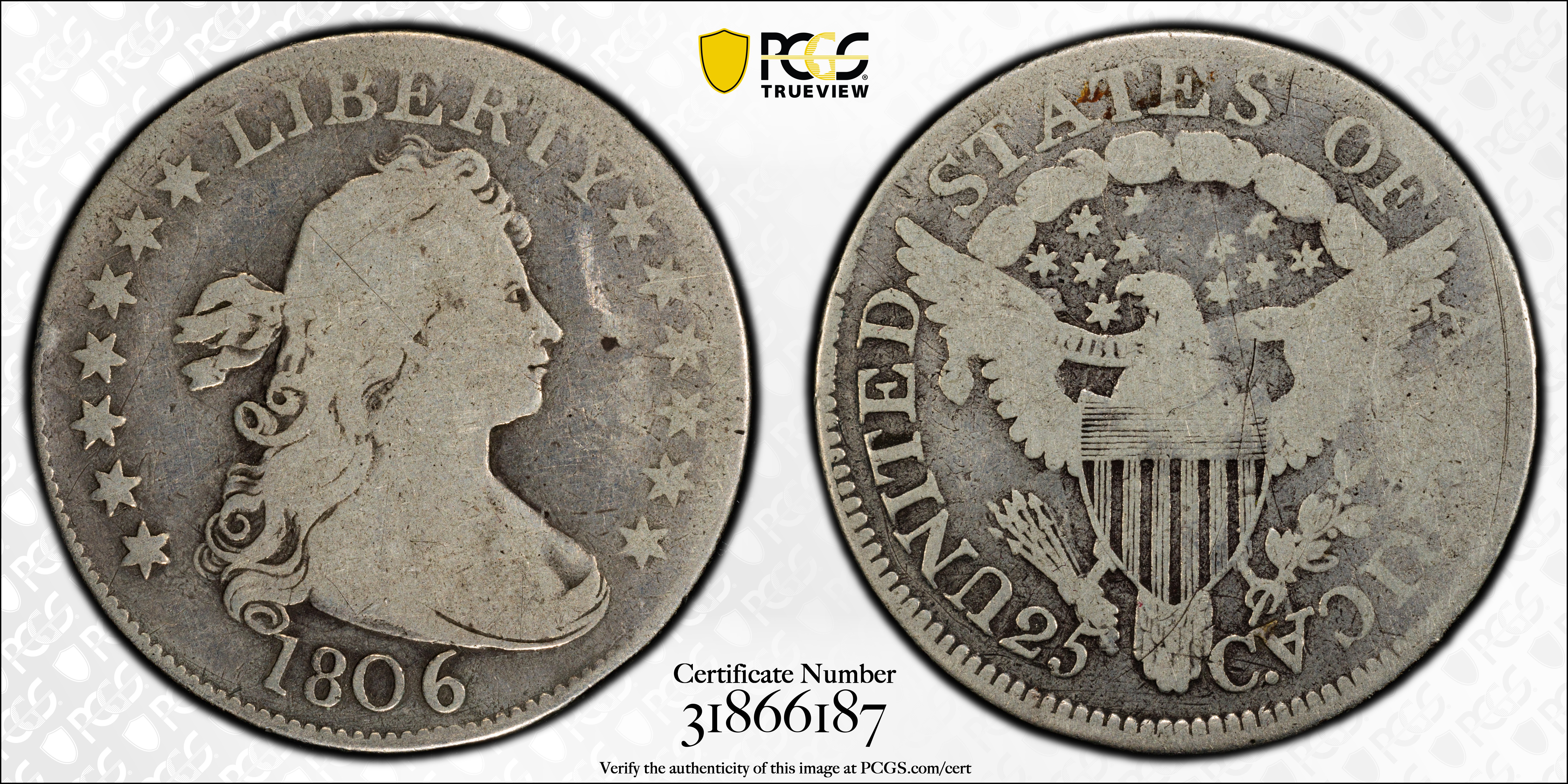 1806 25C G6 Certification #31866187, PCGS #5314