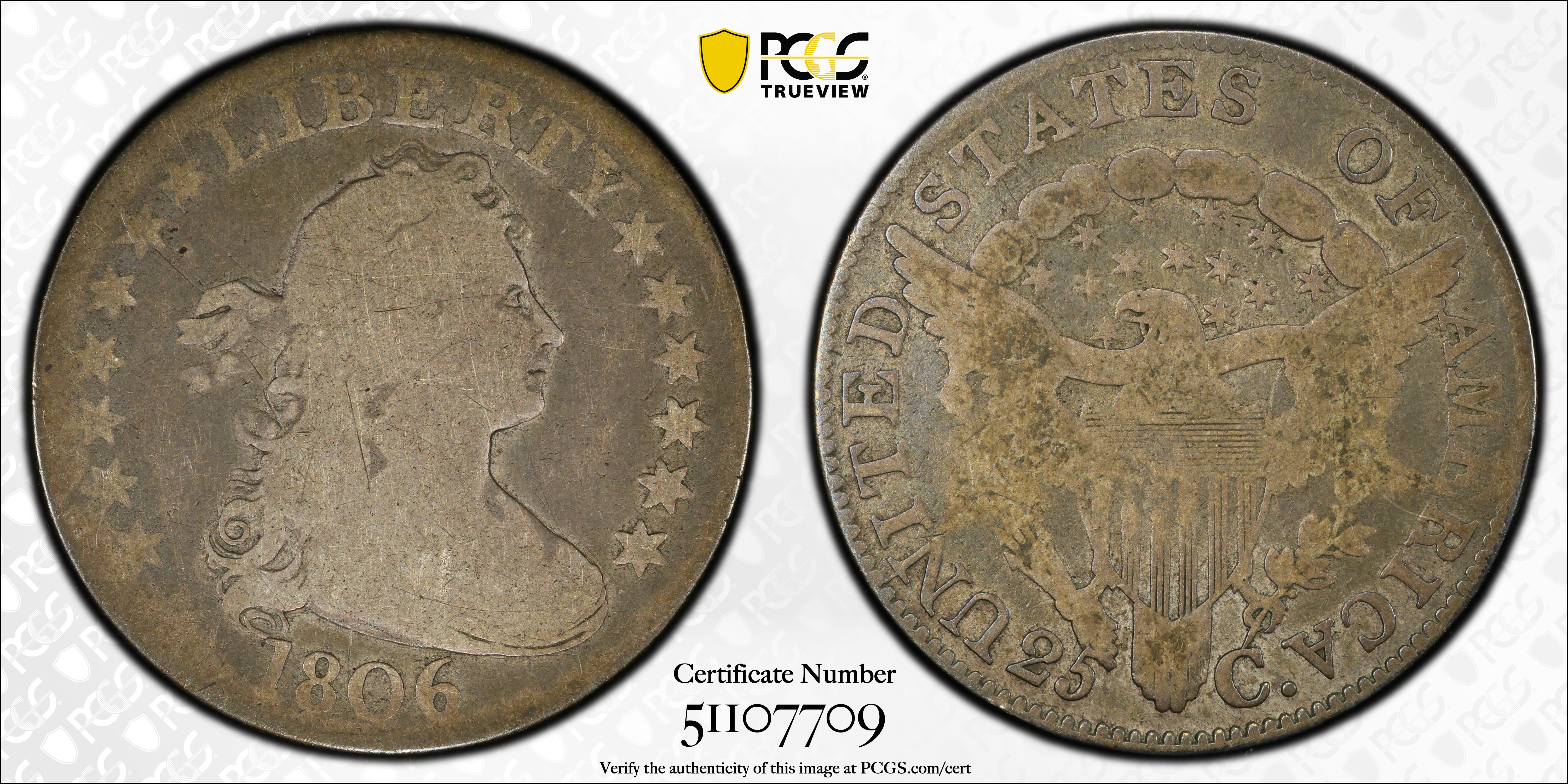 1806 25C G6 Certification #51107709, PCGS #5314