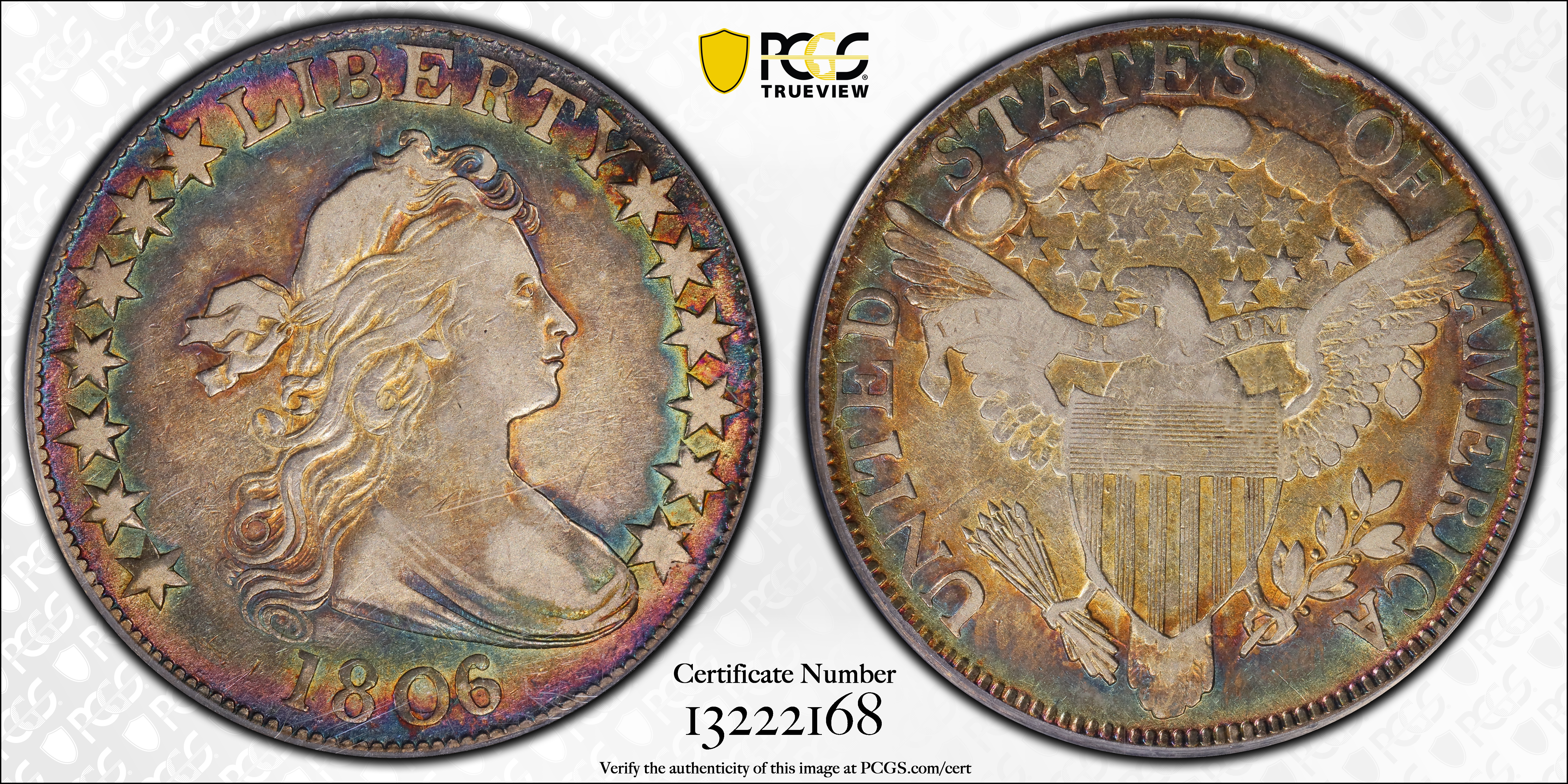1806/5 50C Large Stars VF30 Certification #13222168, PCGS #6077