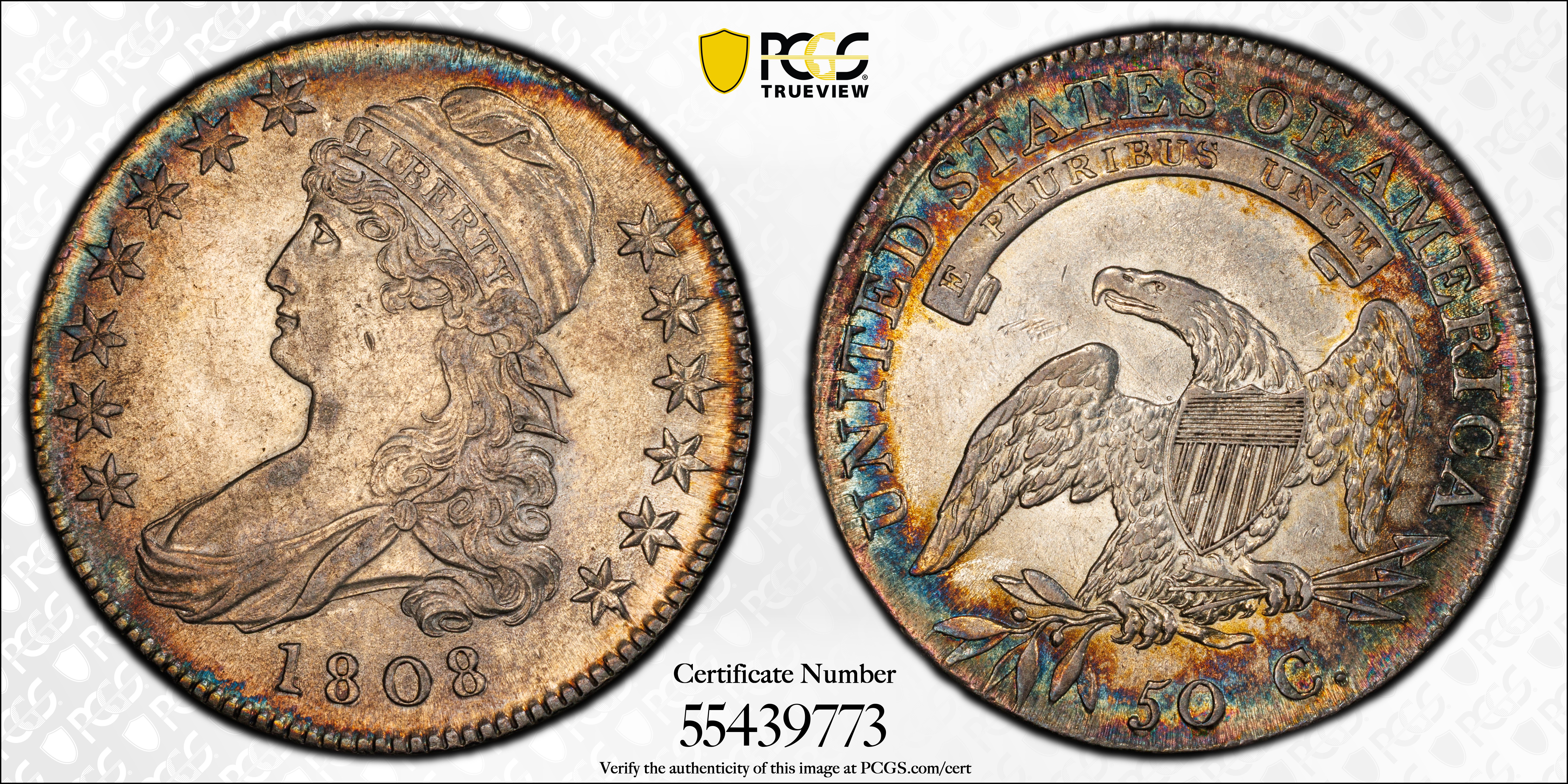 1808 50C AU55 Certification #55439773, PCGS #6090