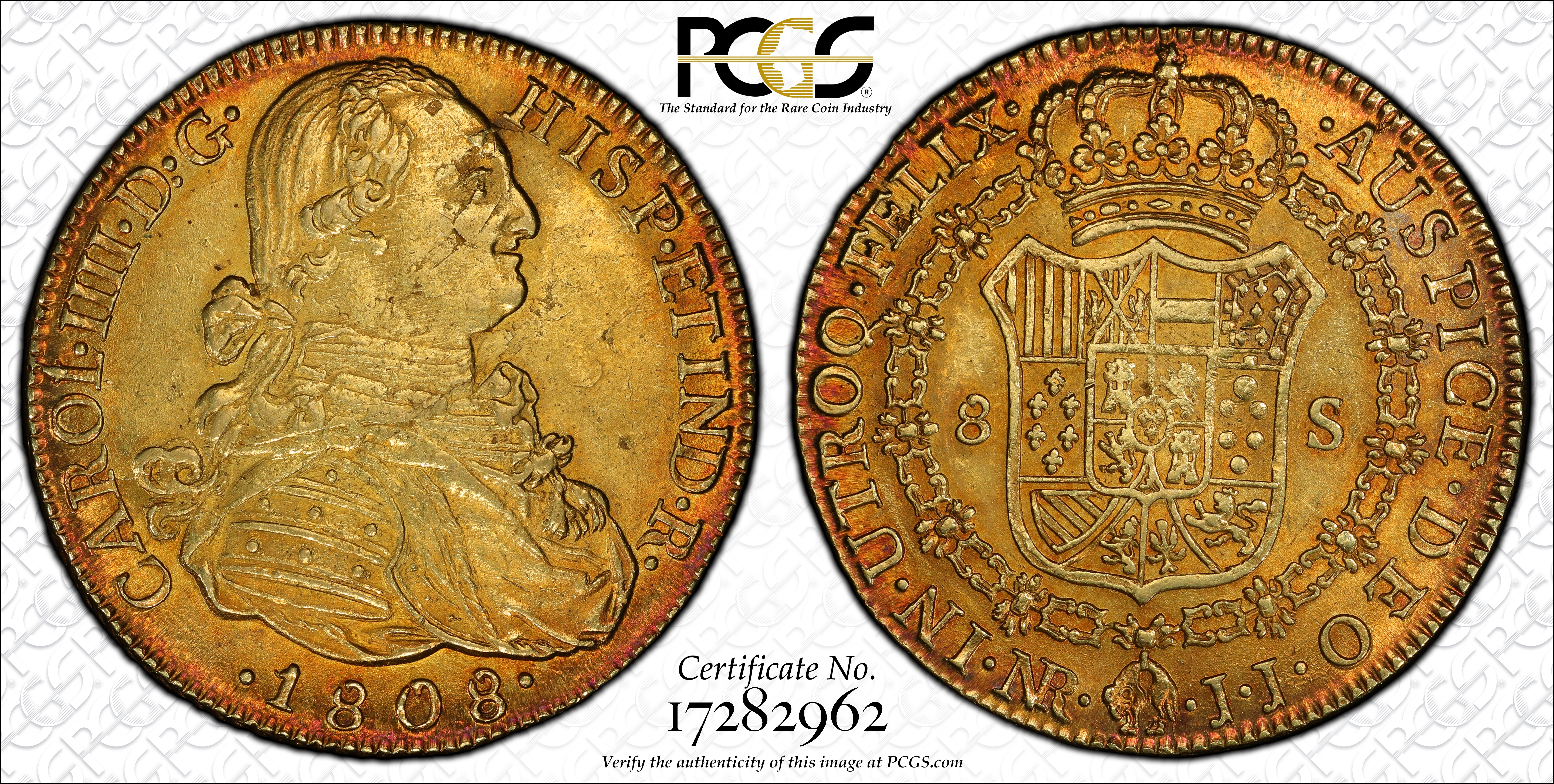 1808-NR JJ 8 Esc Restrepo-97.40a Dbl Dot D:G CAROL IIII MS63 Certification #17282962, PCGS #132271
