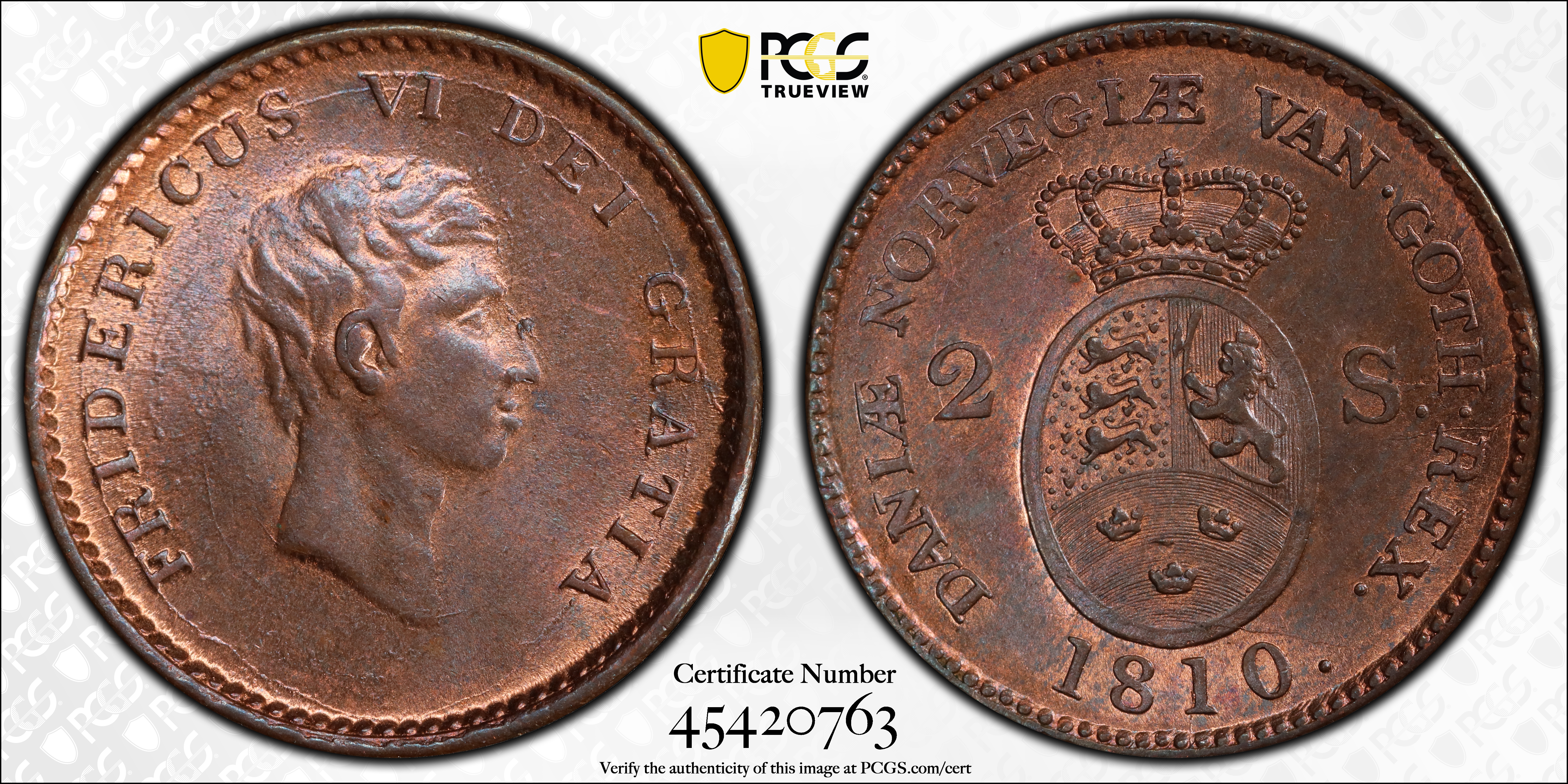 1810 2 Sk KM-663, RB MS64RB Certification #45420763, PCGS #496872