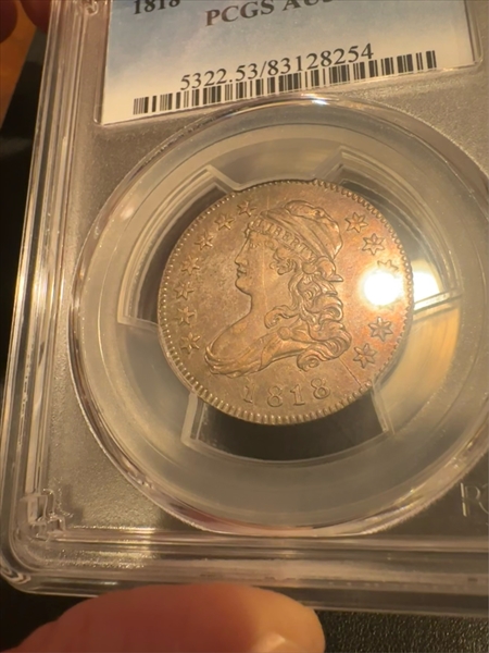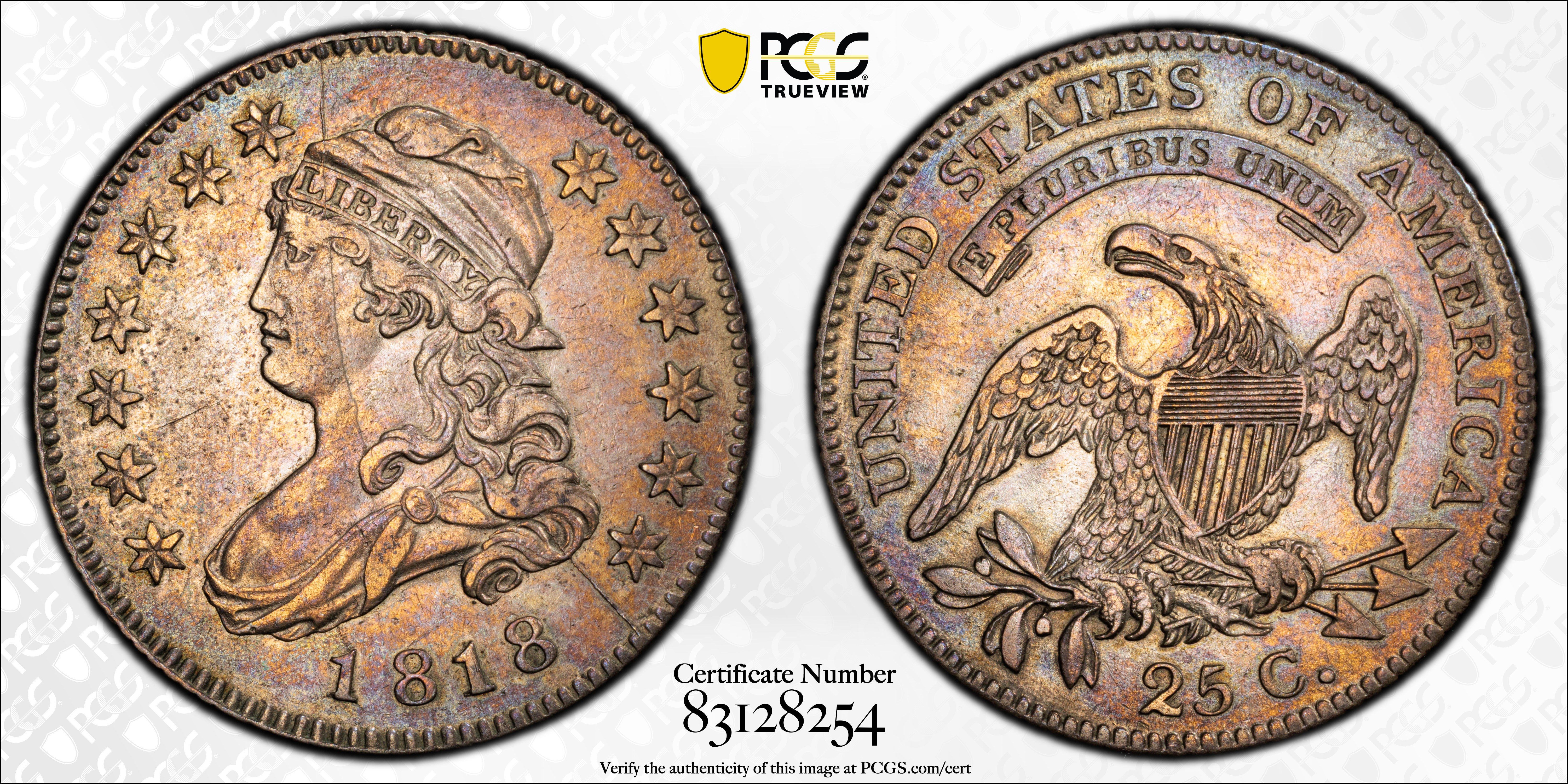 1818 25C B-4 AU53 Certification #83128254, PCGS #38945