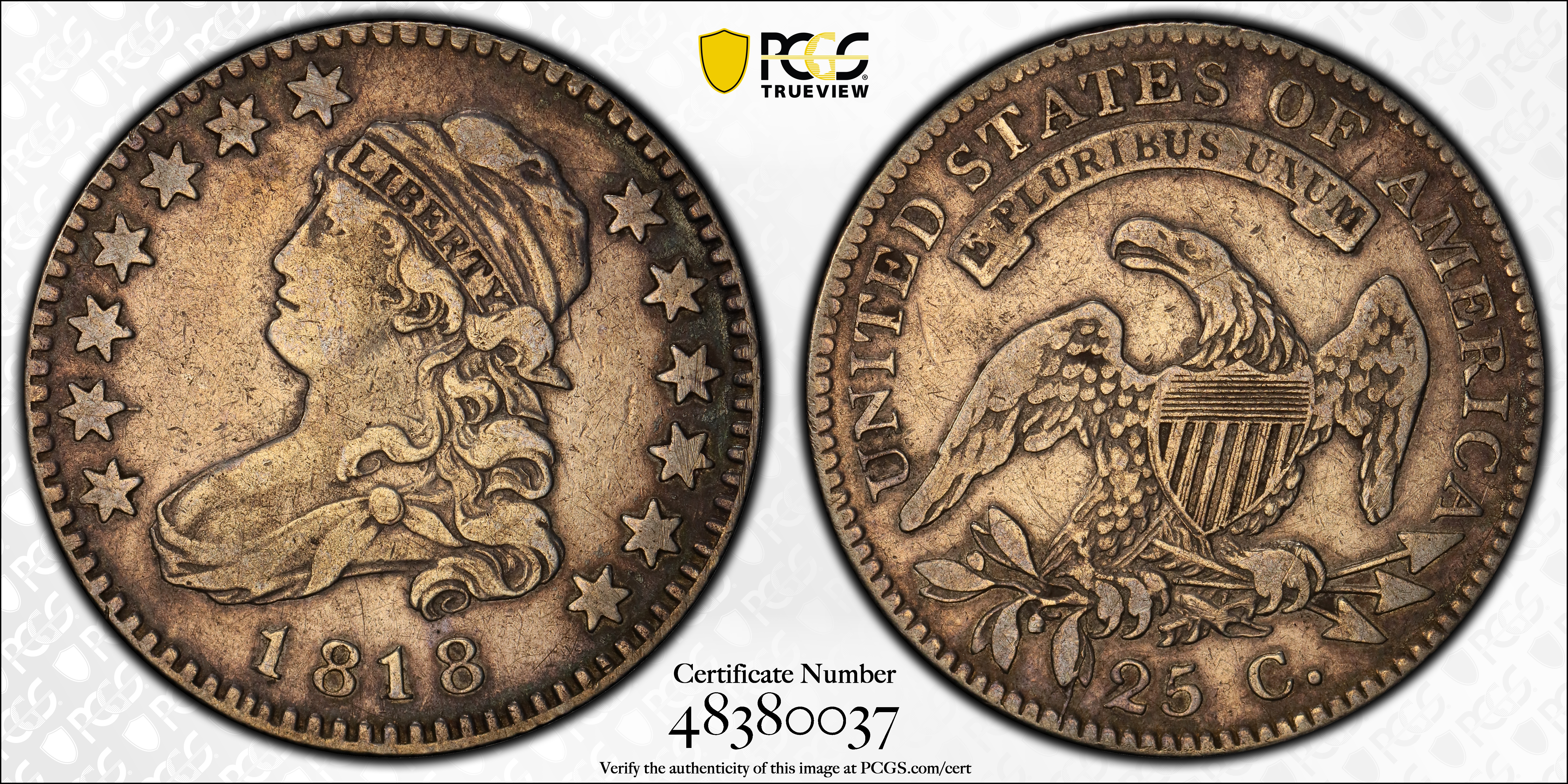 1818 25C N1 Certification #48380037, PCGS #5322