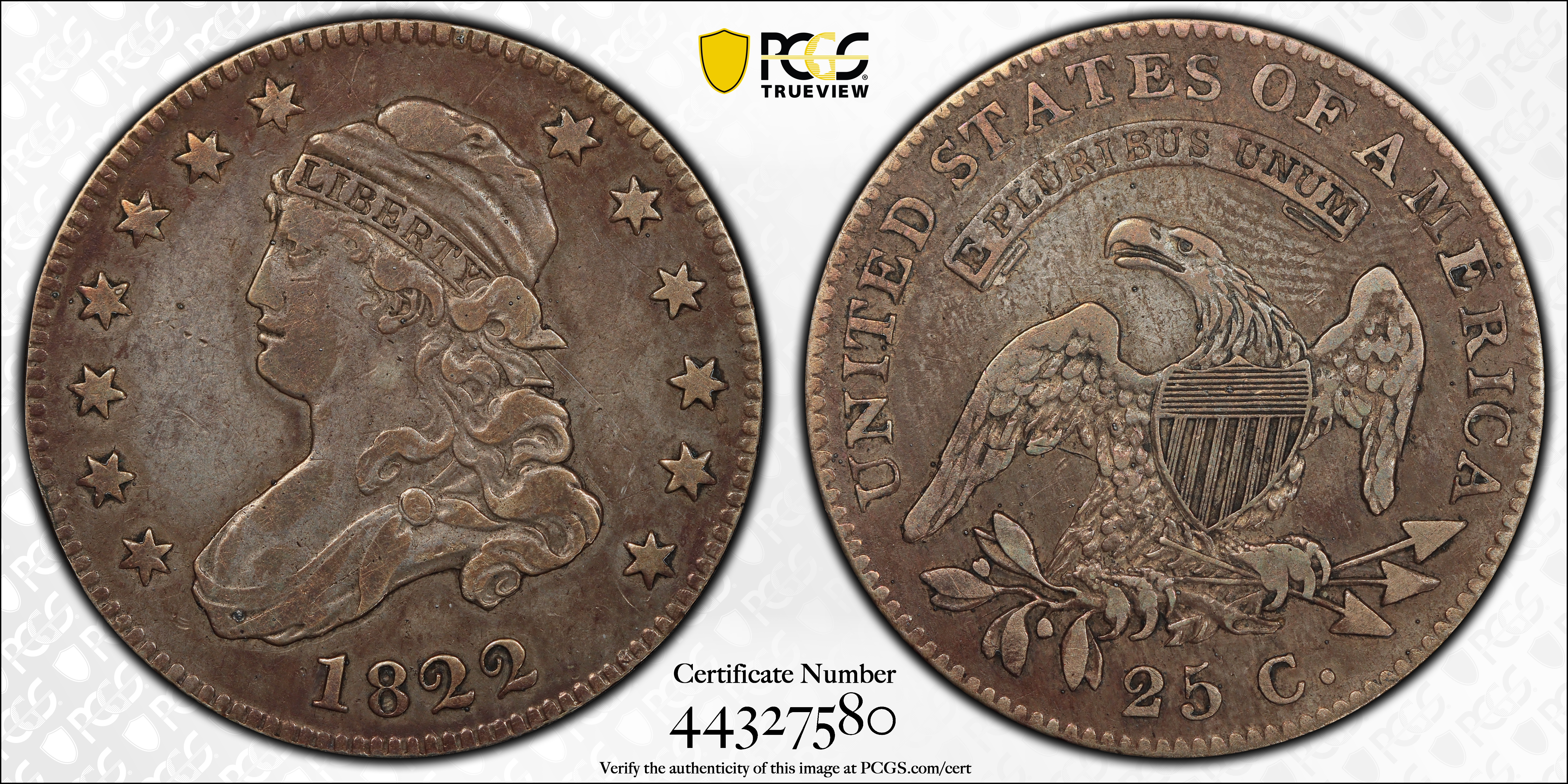 1822 25C VF25 Certification #44327580, PCGS #5332