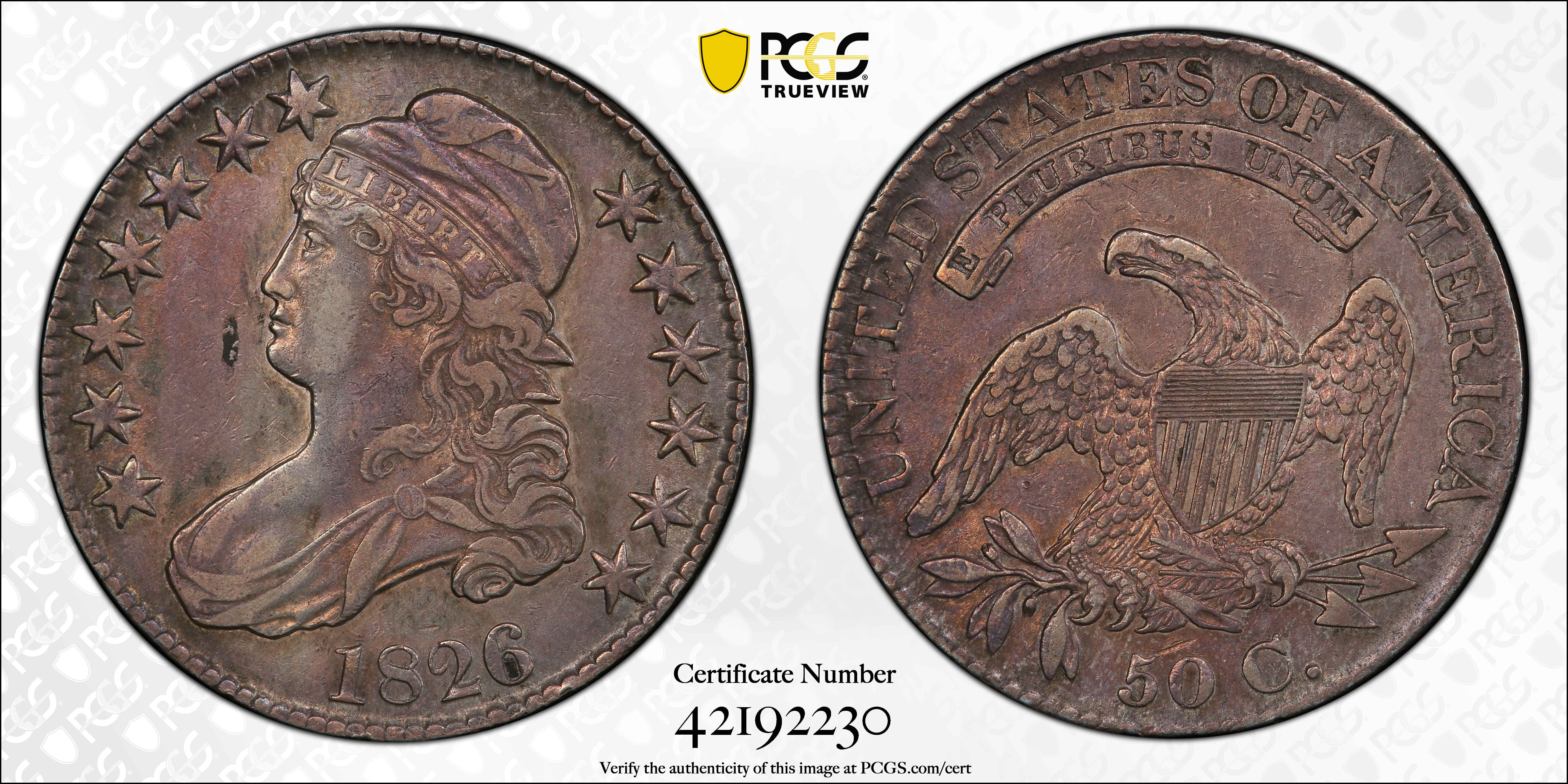 The 1826 Capped Bust Half is one of the more common dates in the series. There are still hundreds of examples available up to about AU58. However, in Uncirculated grades they become significantly scarcer. And fewer examples remain in MS65 and MS66 condition. In MS67 they are considered rare.