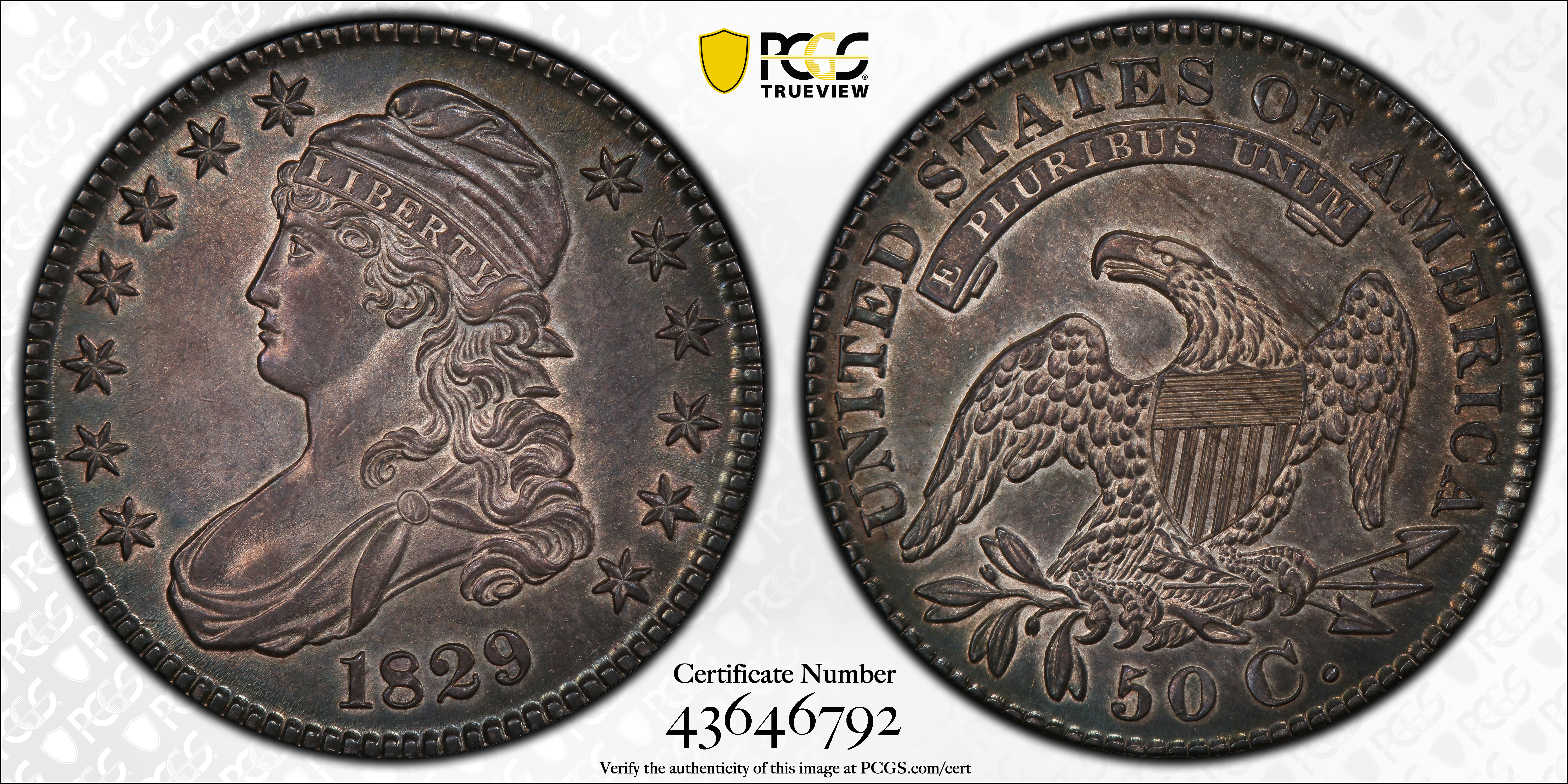 1829 50C AU53 Certification #43646792, PCGS #6154
