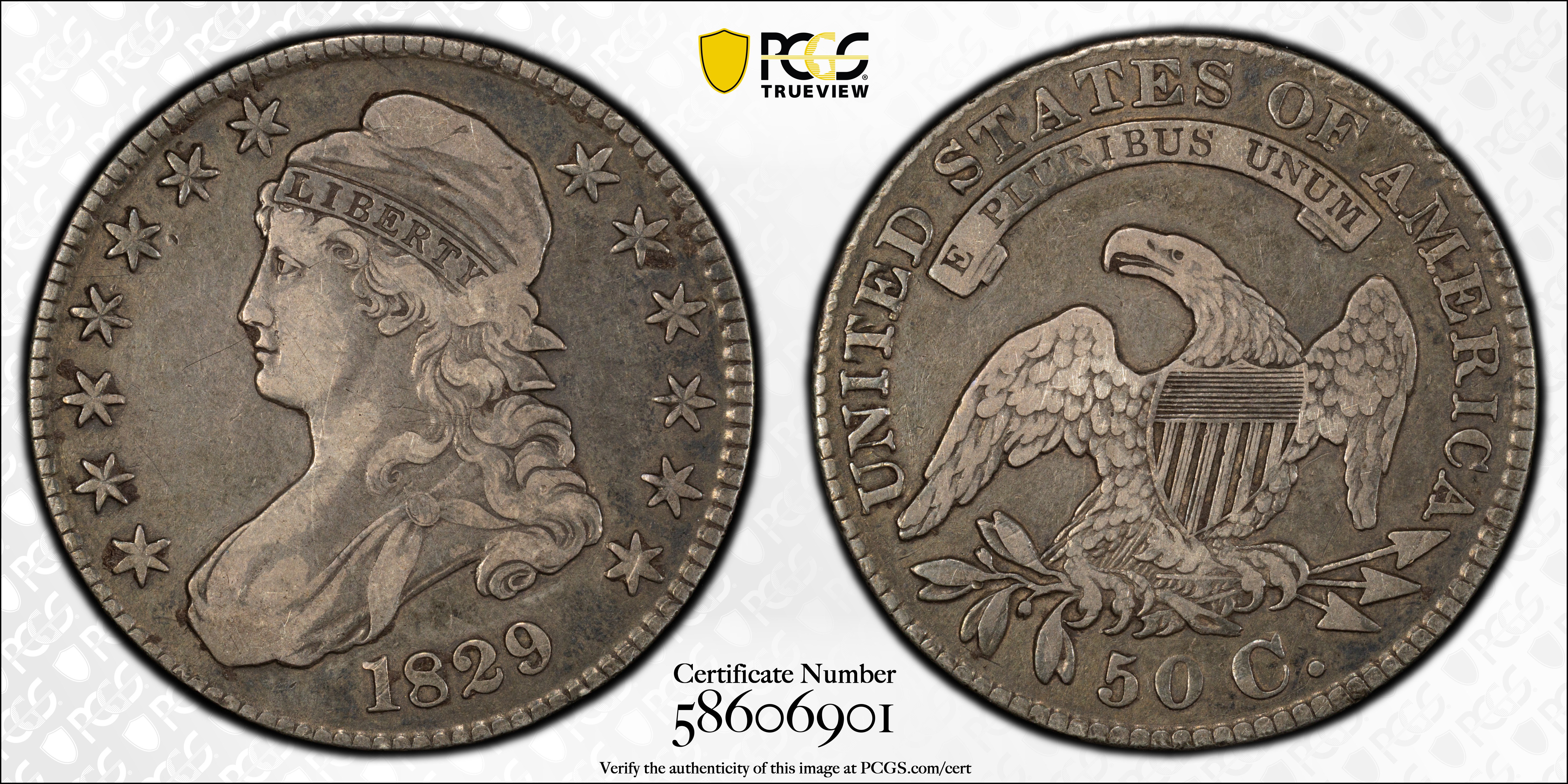 1829 50C VF30 Certification #58606901, PCGS #6154