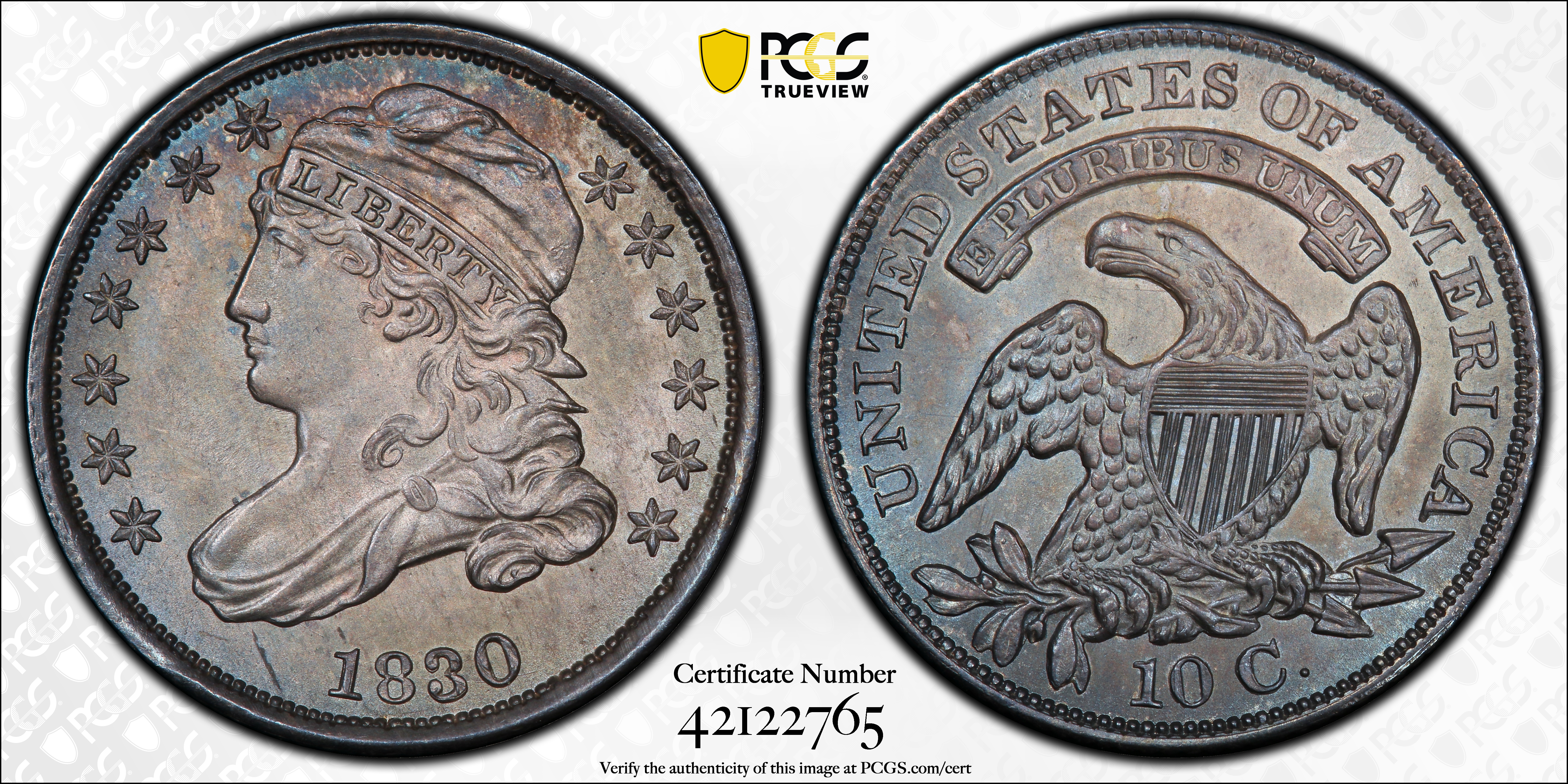 1830 10C Medium 10C MS65+ Certification #42122765, PCGS #4516