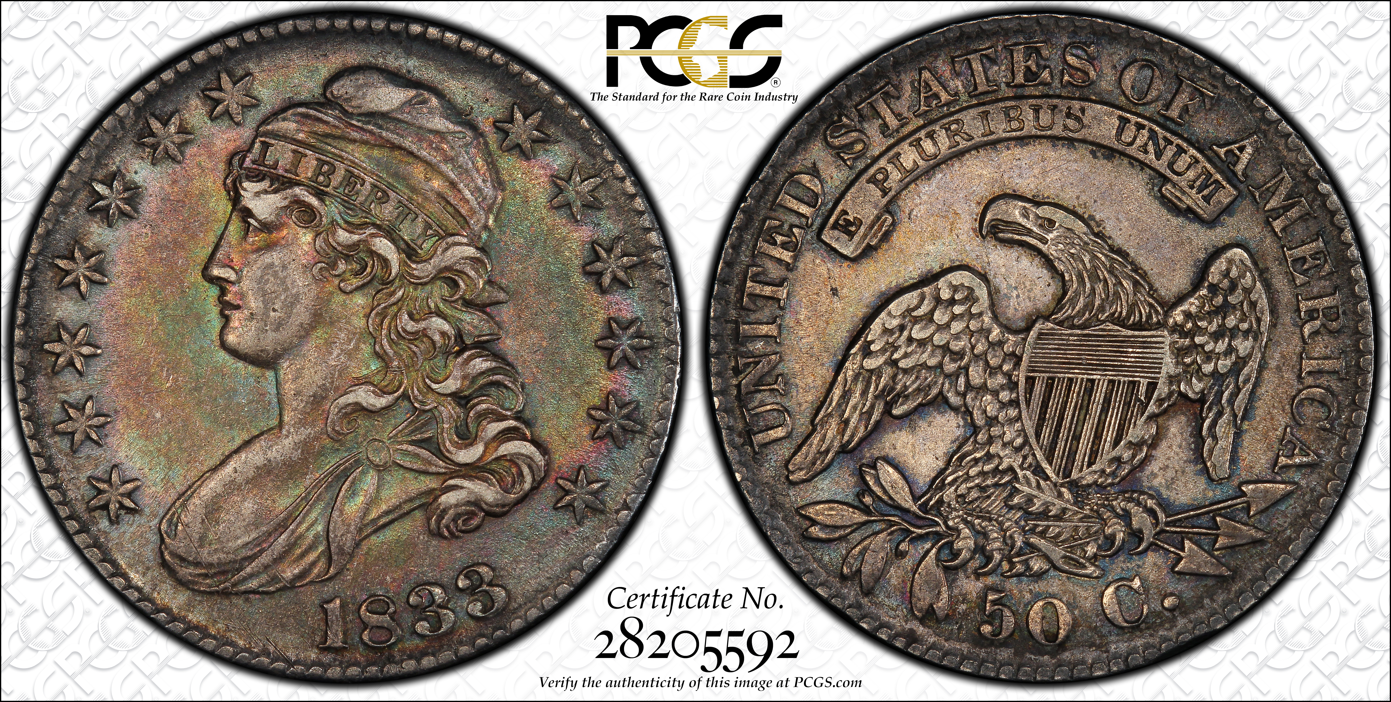 1833 50C AU50 Certification #28205592, PCGS #6163